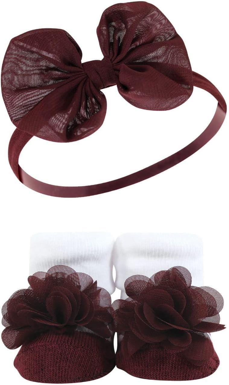 Hudson Baby Girl’s Headband and Socks Giftset(Houndstooth Burgundy)