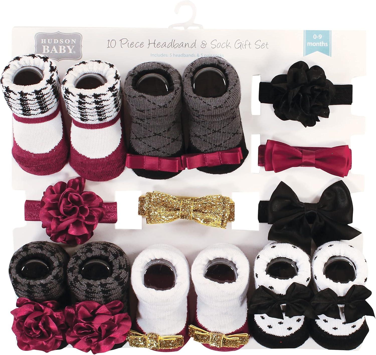 Hudson Baby Girl’s Headband and Socks Giftset(Fancy 10-pack)