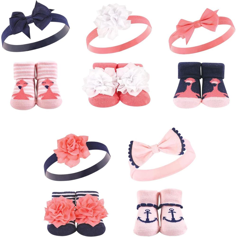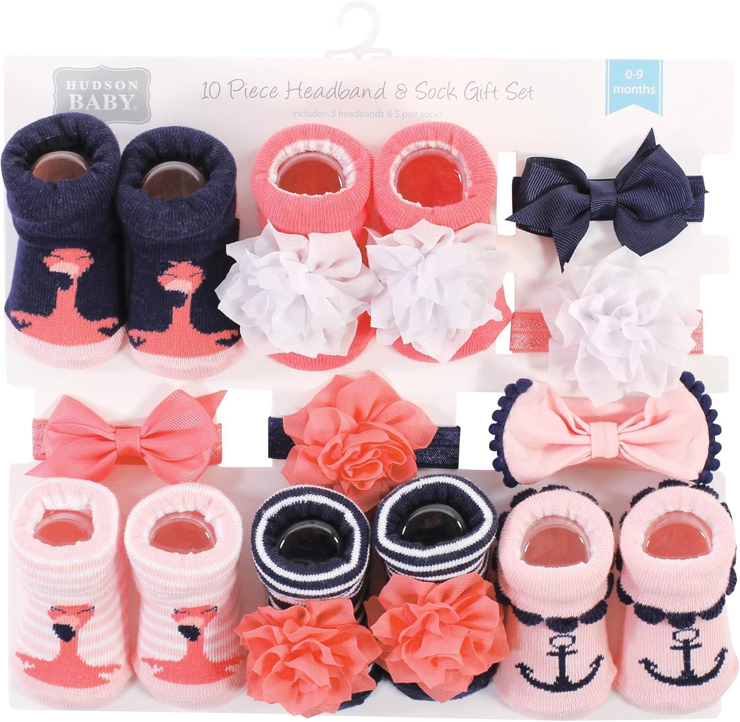 Hudson Baby Girl’s Headband and Socks Giftset(Flamingo 10-pack)