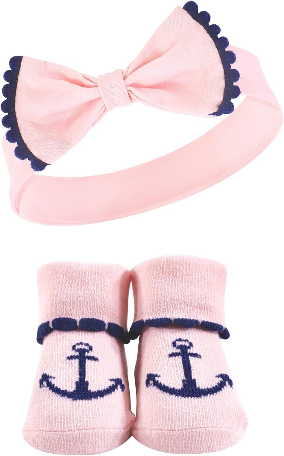 Hudson Baby Girl’s Headband and Socks Giftset(Navy White 10-pack)
