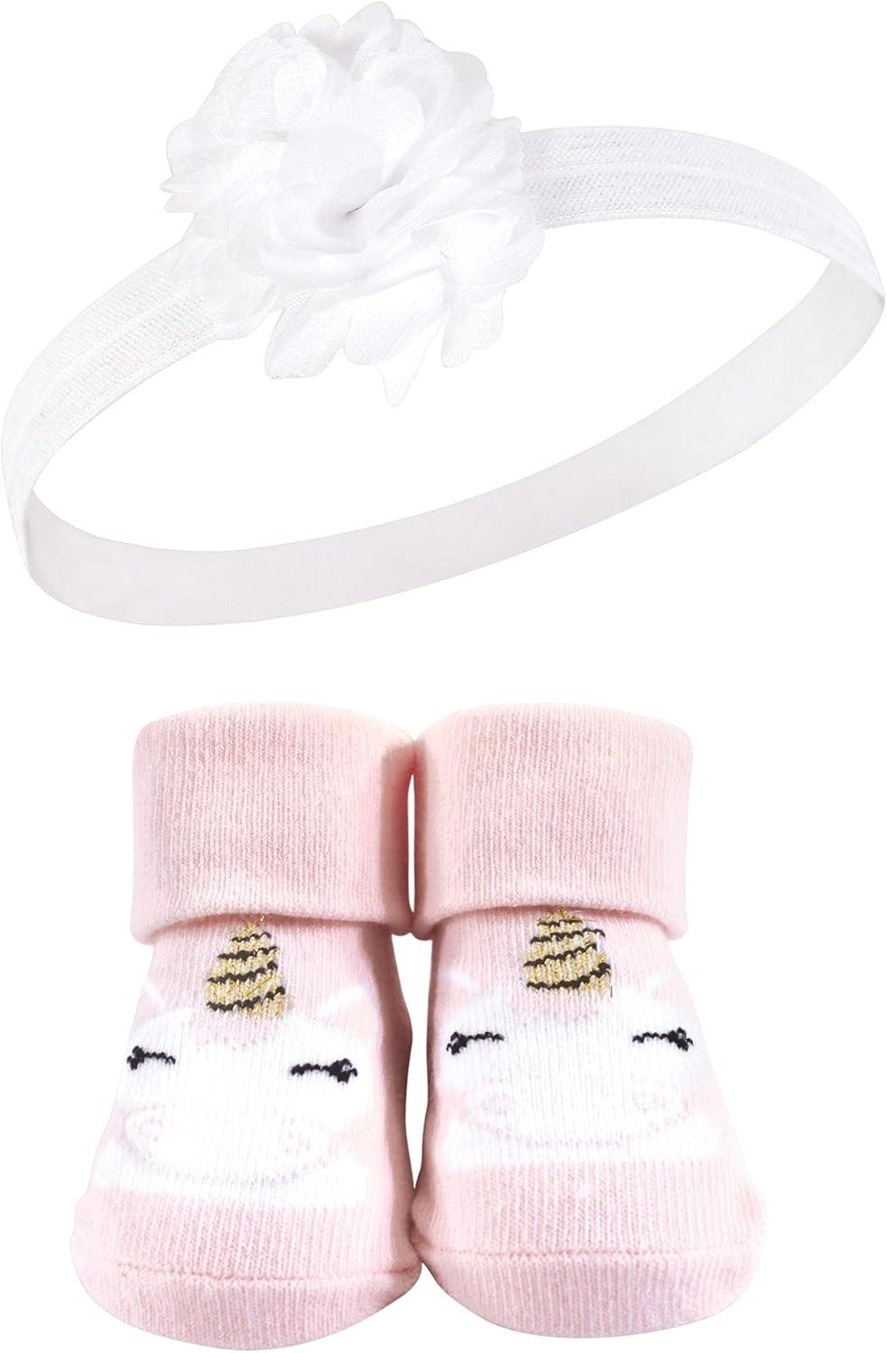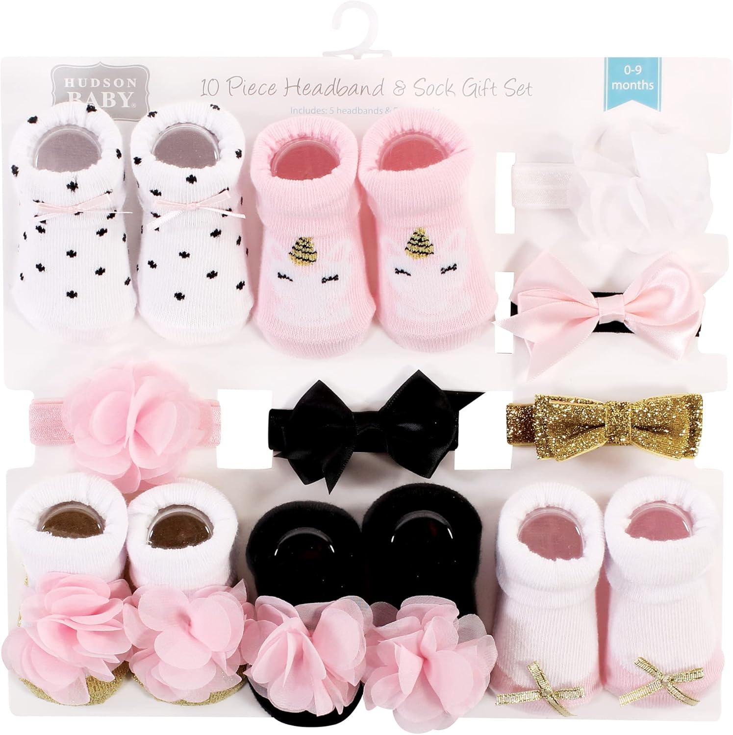 Hudson Baby Girl’s Headband and Socks Giftset(Gold Unicorn 10-pack)