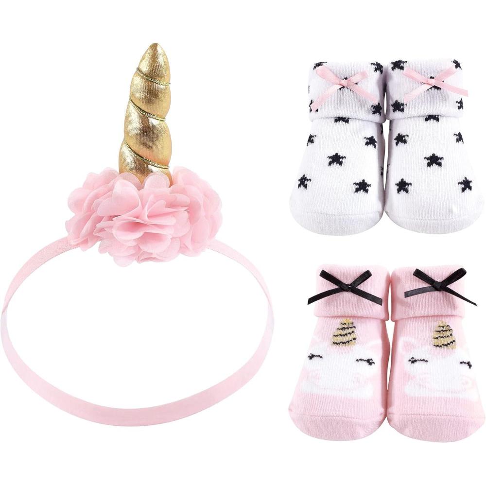 Hudson Baby Girl’s Headband and Socks Giftset(Gold Unicorn 6-pack)