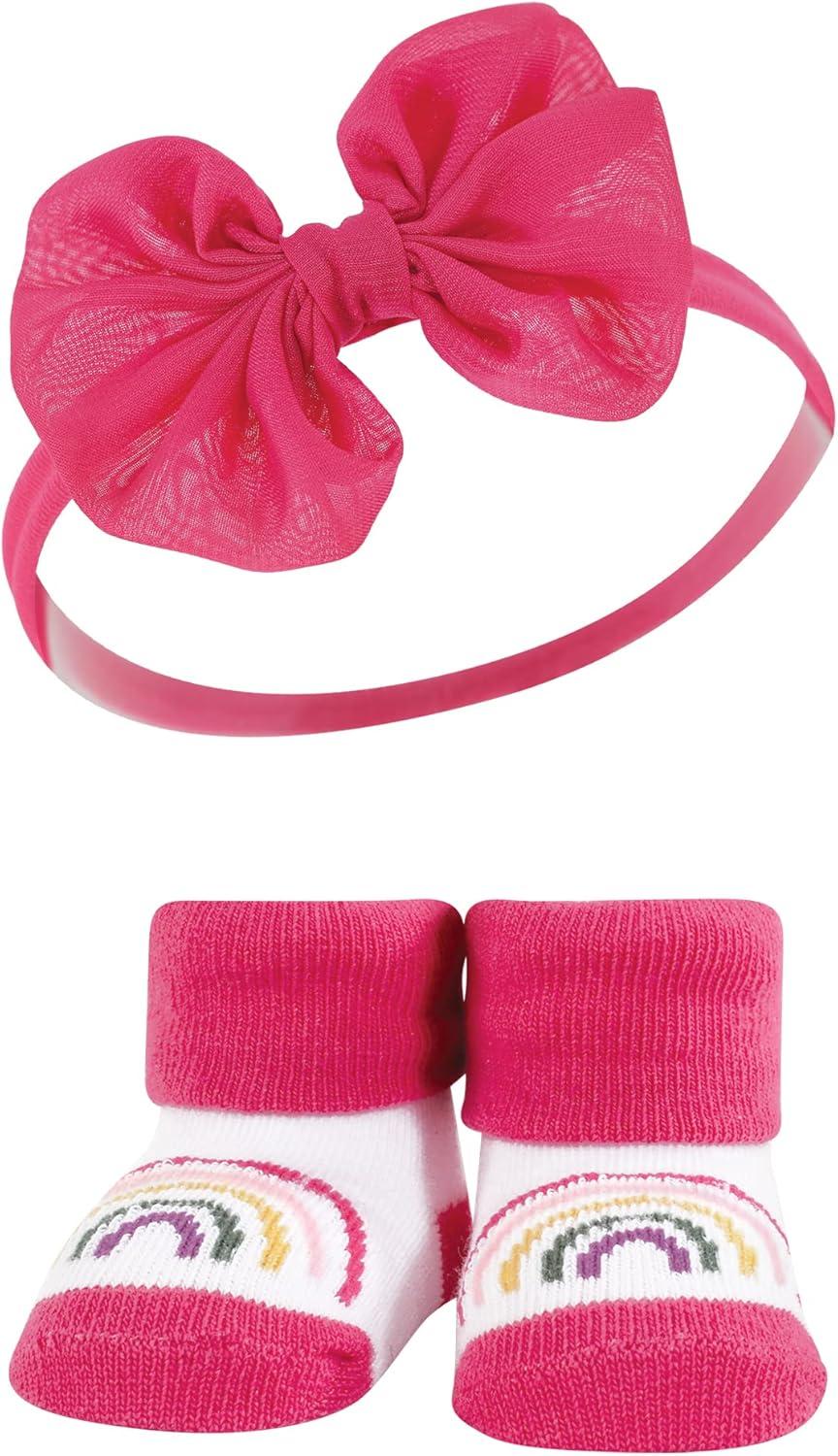 Hudson Baby Girl’s Headband and Socks Giftset(Blush Taupe)