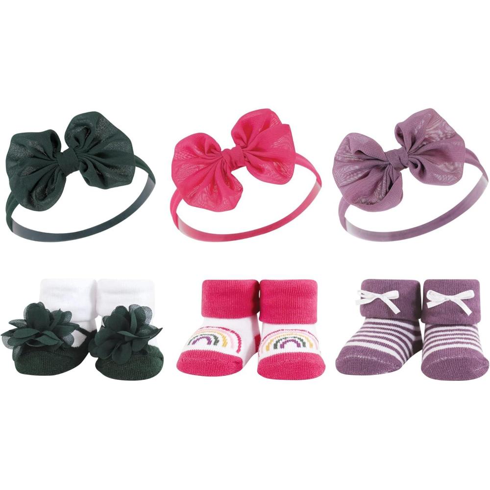 Hudson Baby Girl’s Headband and Socks Giftset(Green Purple)