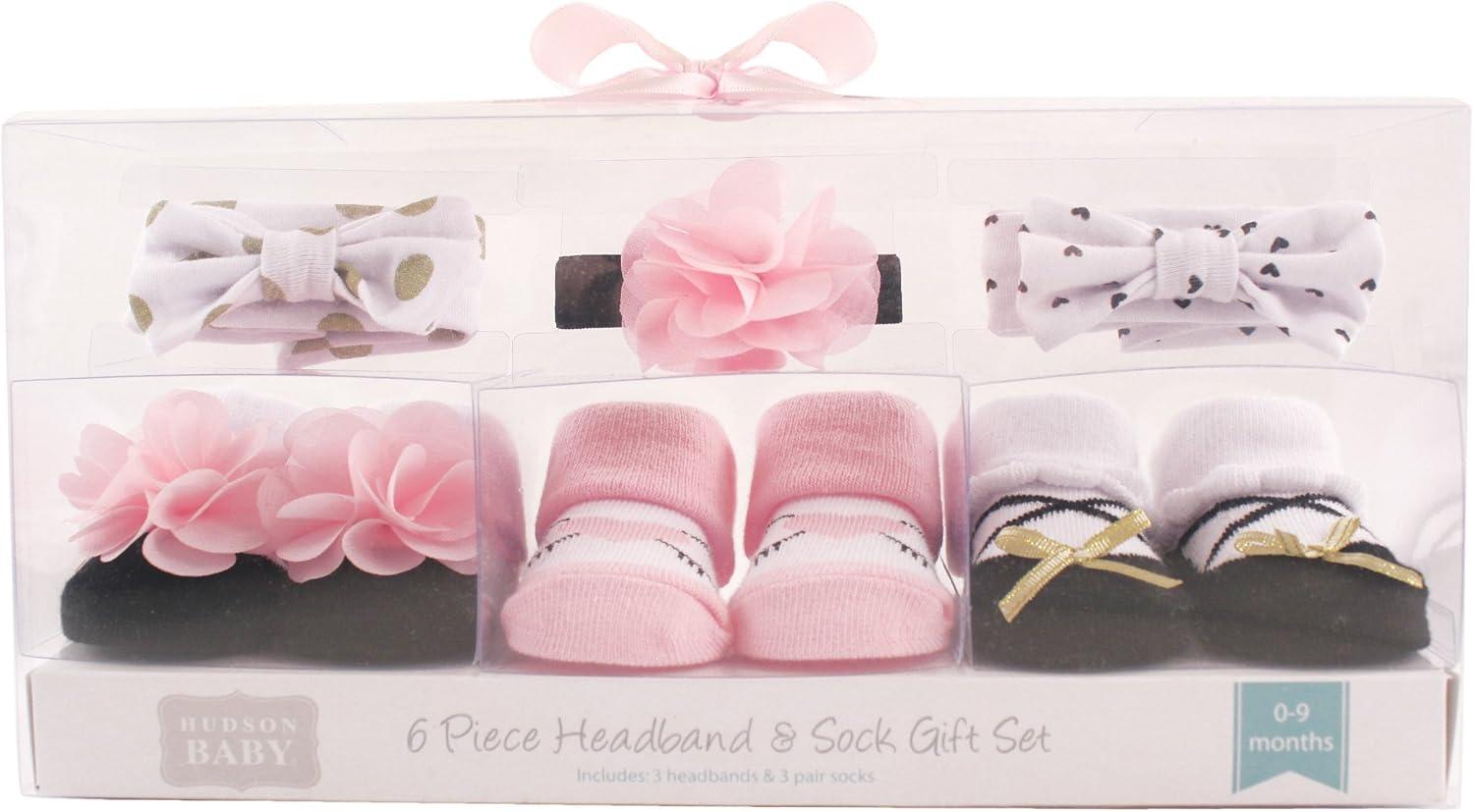 Hudson Baby Girl’s Headband and Socks Giftset(Burgundy Pink Teal)