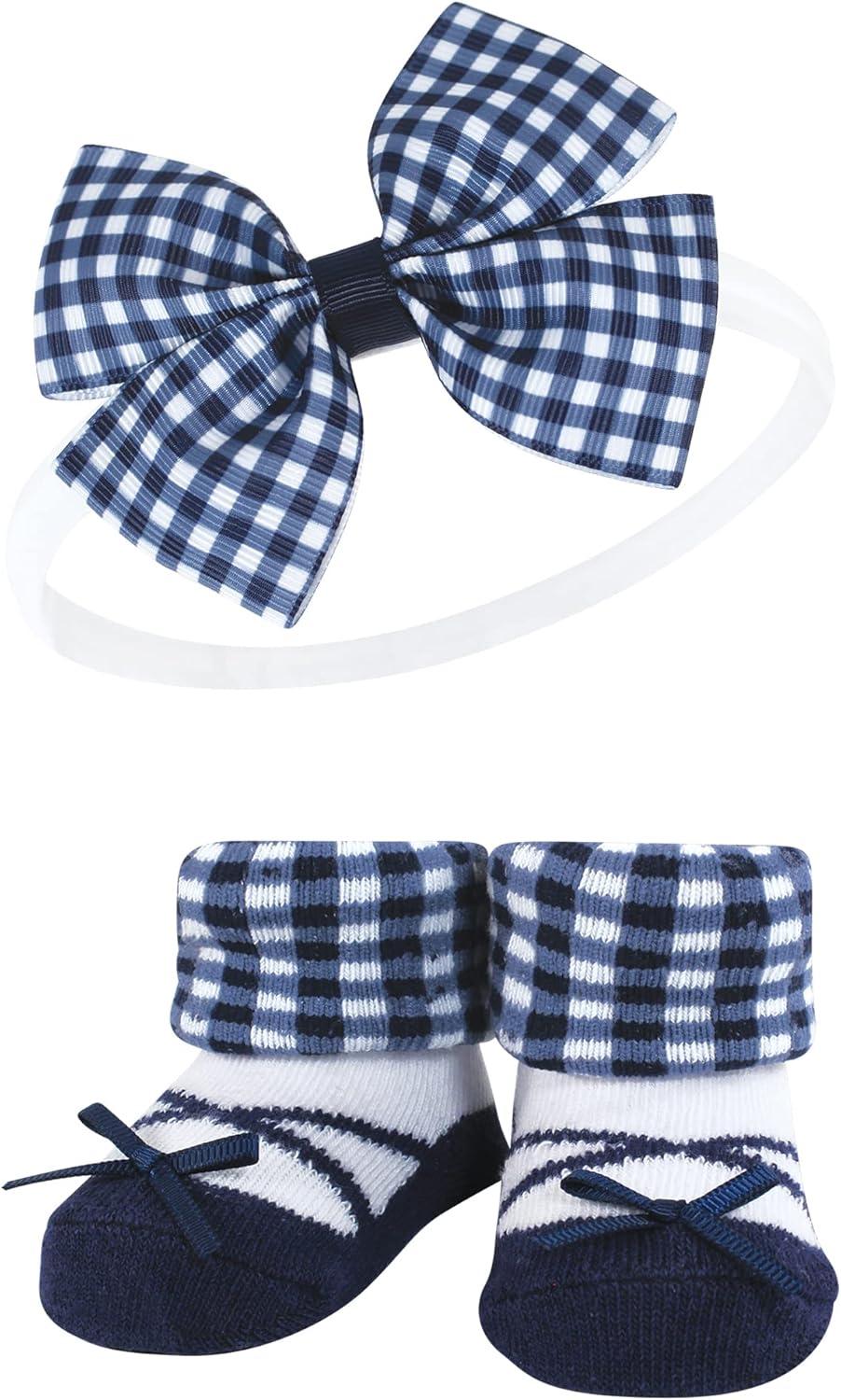 Hudson Baby Girl’s Headband and Socks Giftset(Navy Gingham)