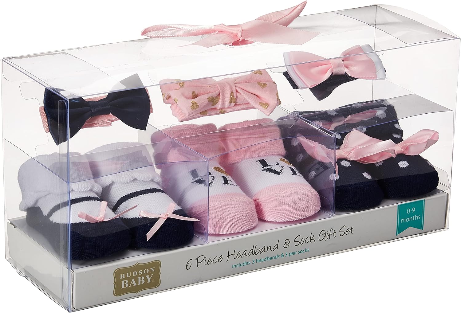 Hudson Baby Girl’s Headband and Socks Giftset(Black Pink Bows)