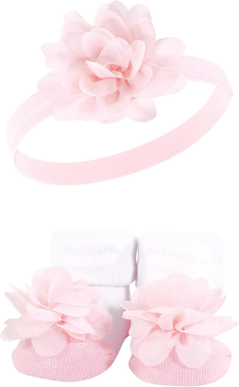 Hudson Baby Girl’s Headband and Socks Giftset(Pink Floral Chambray)