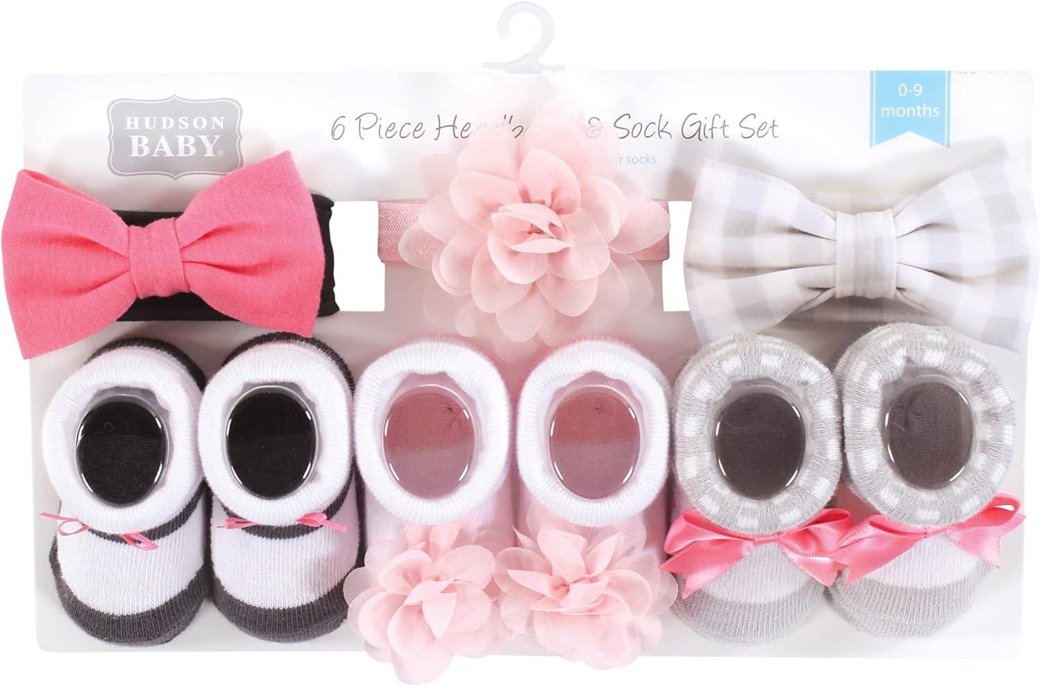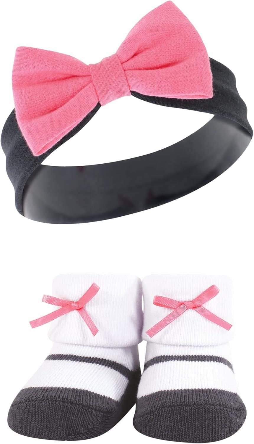 Hudson Baby Girl’s Headband and Socks Giftset(Pink Charcoal)
