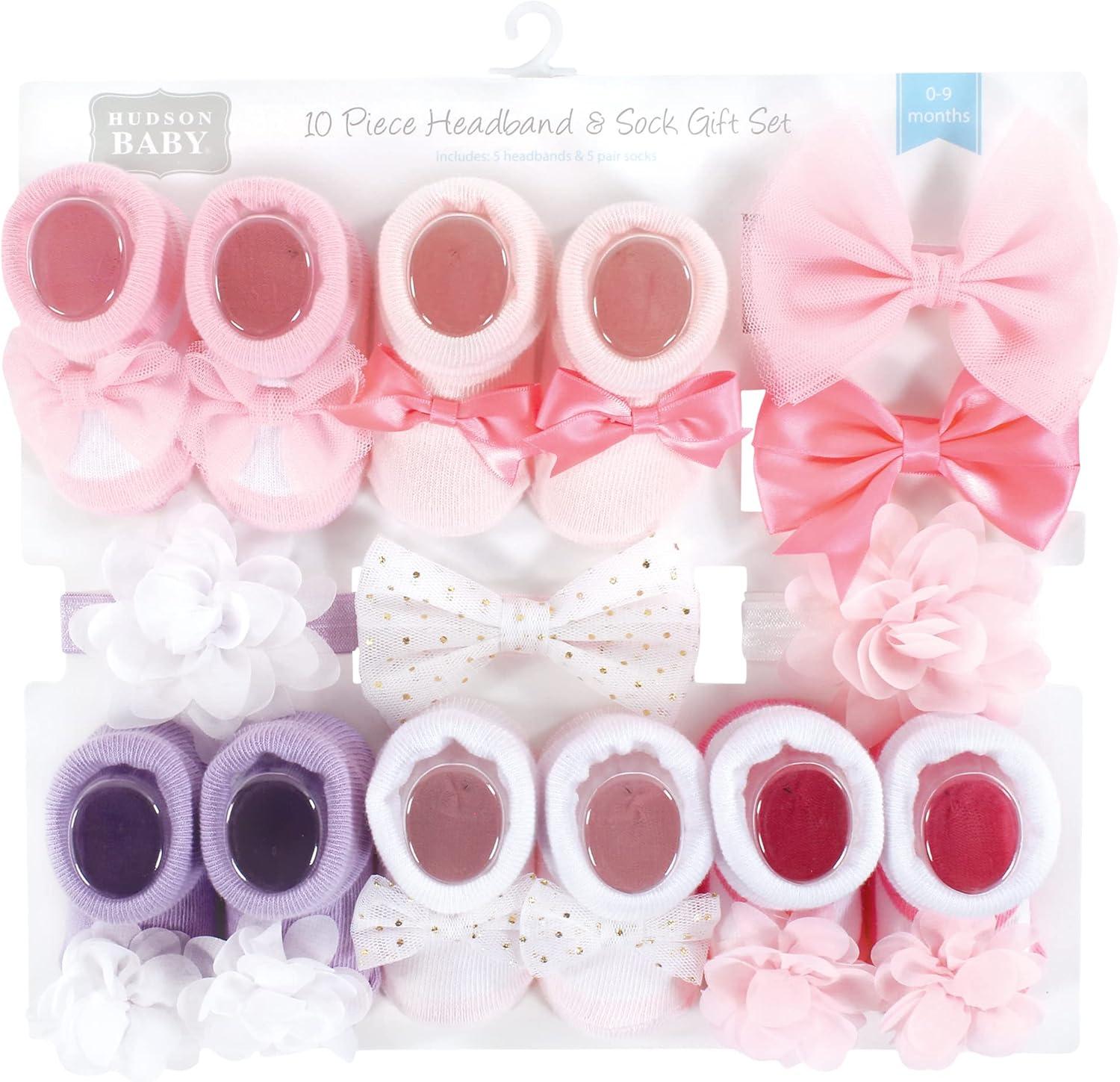 Hudson Baby Girl’s Headband and Socks Giftset(Pink Navy 10-piece)