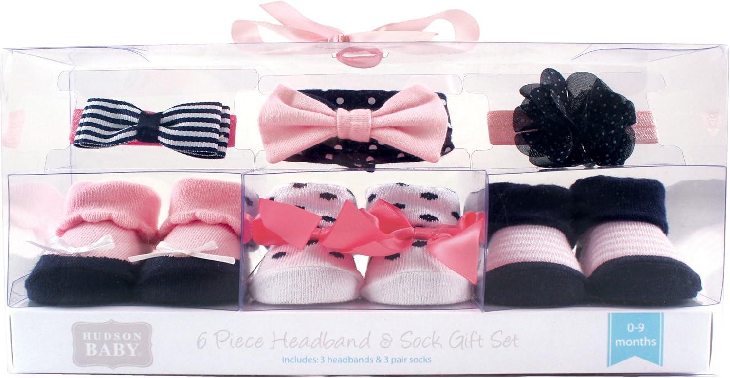 Hudson Baby Girl’s Headband and Socks Giftset(Pink Navy 6-piece)