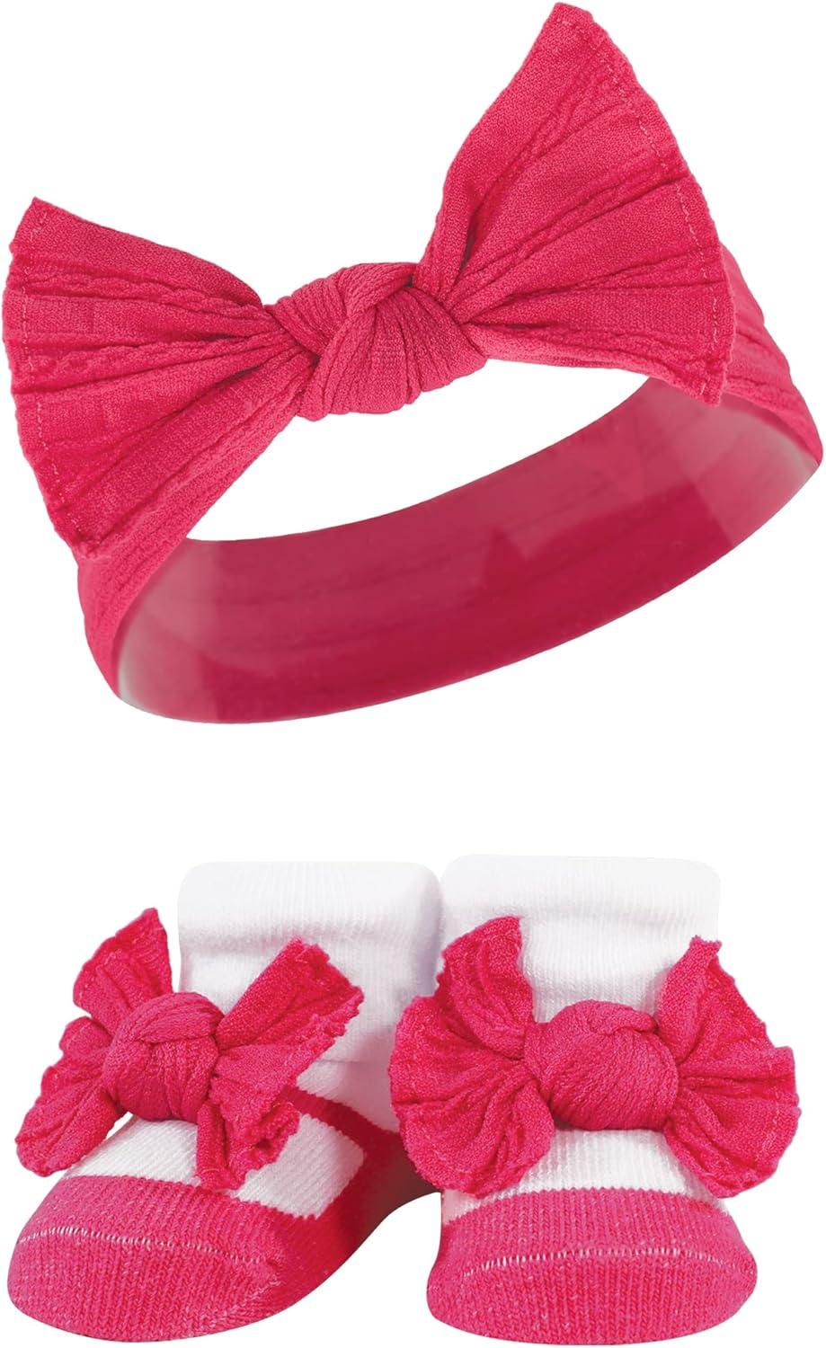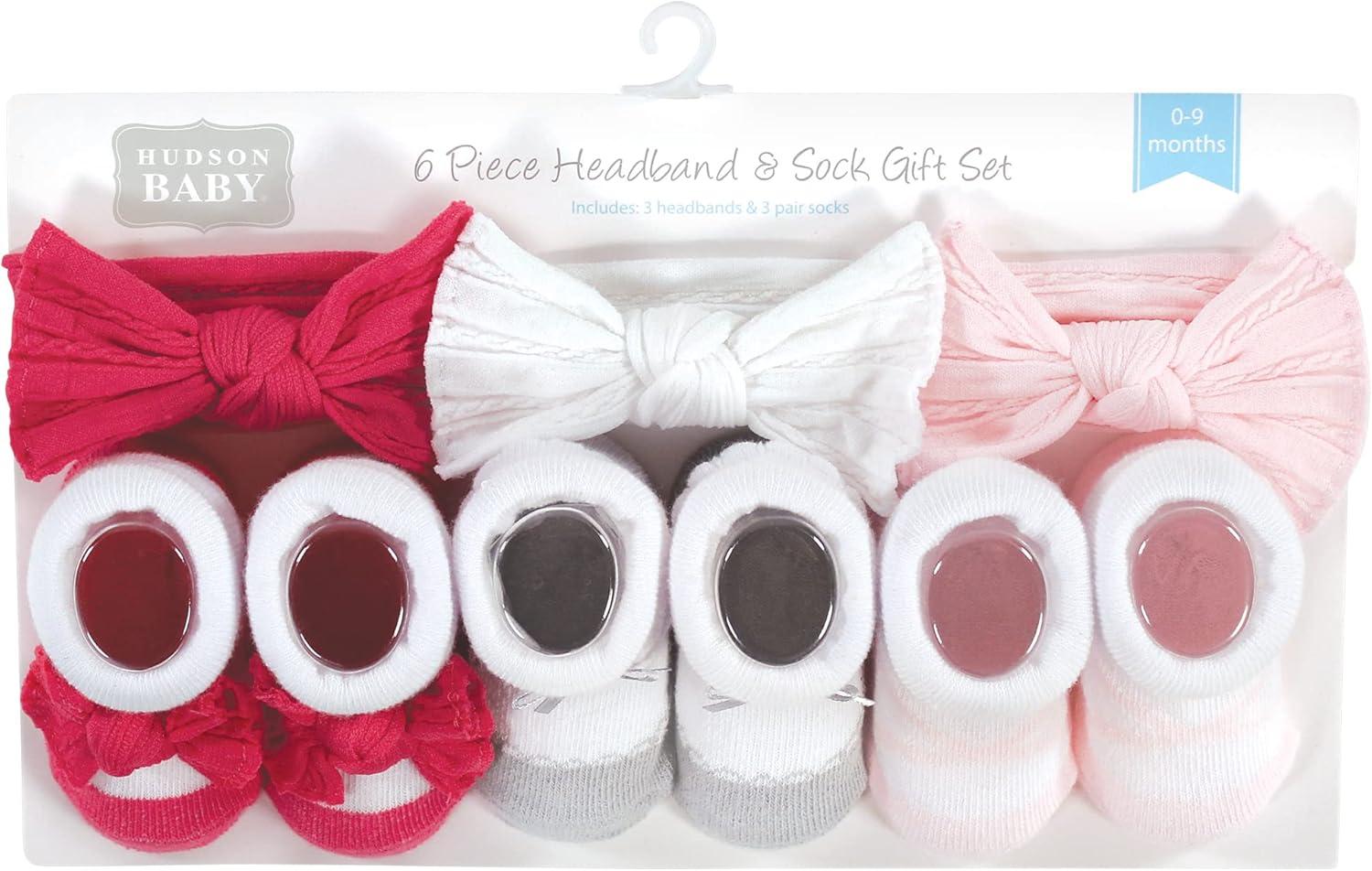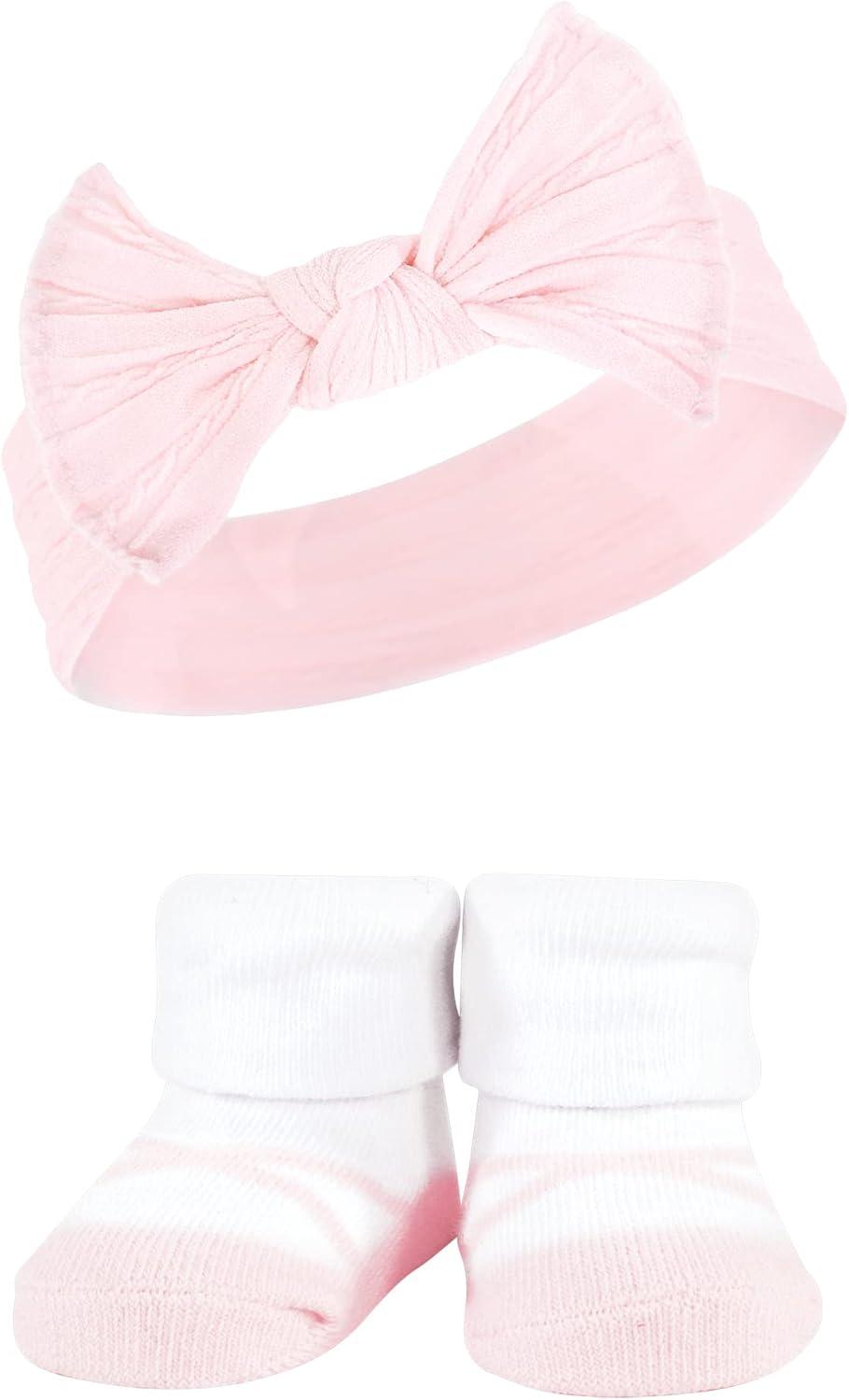 Hudson Baby Girl’s Headband and Socks Giftset(Pink White)