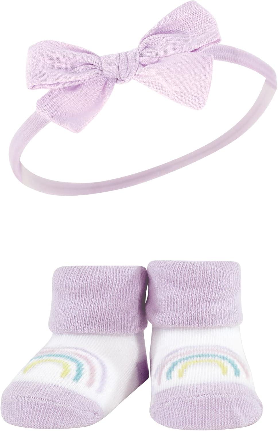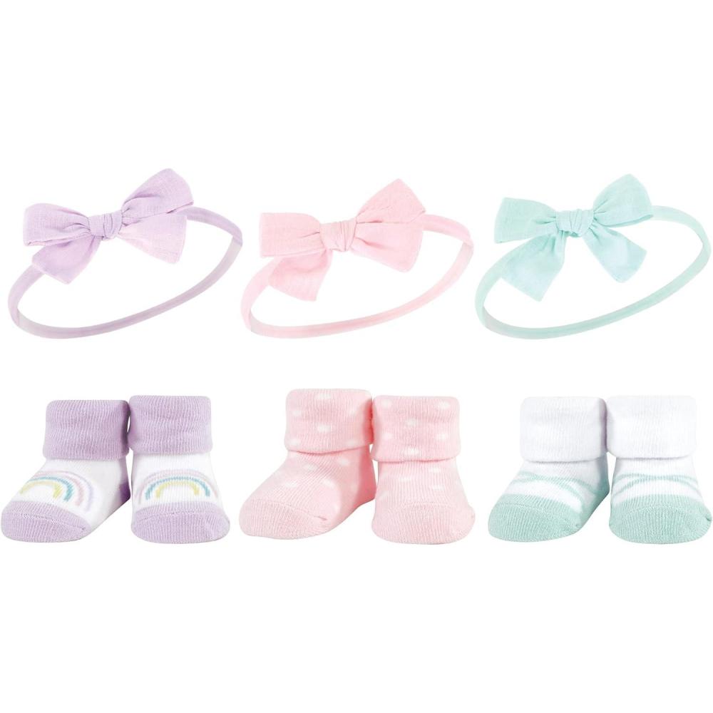 Hudson Baby Girl’s Headband and Socks Giftset(Purple Mint Rainbow)