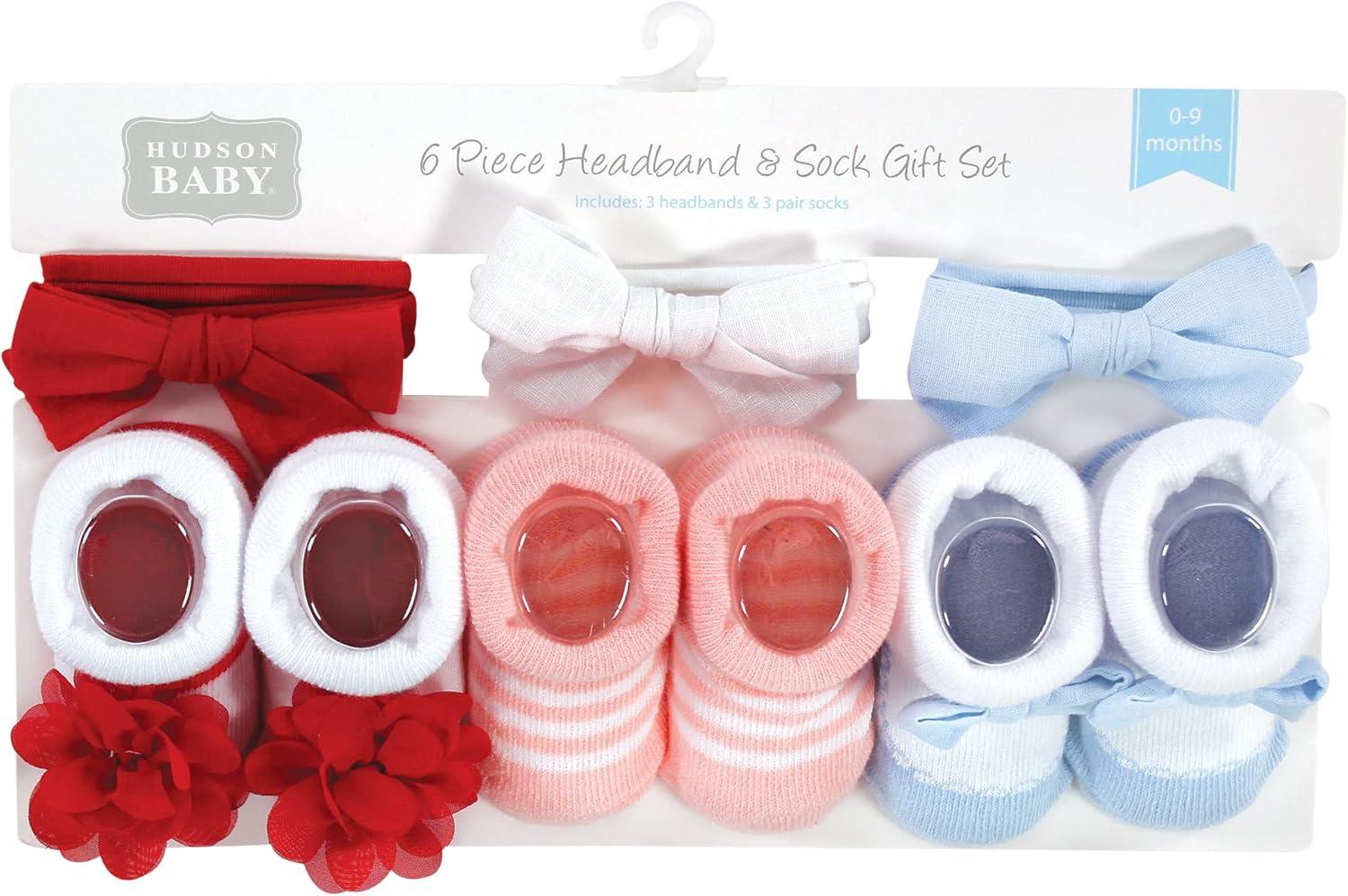 Hudson Baby Girl’s Headband and Socks Giftset(Red Blue)
