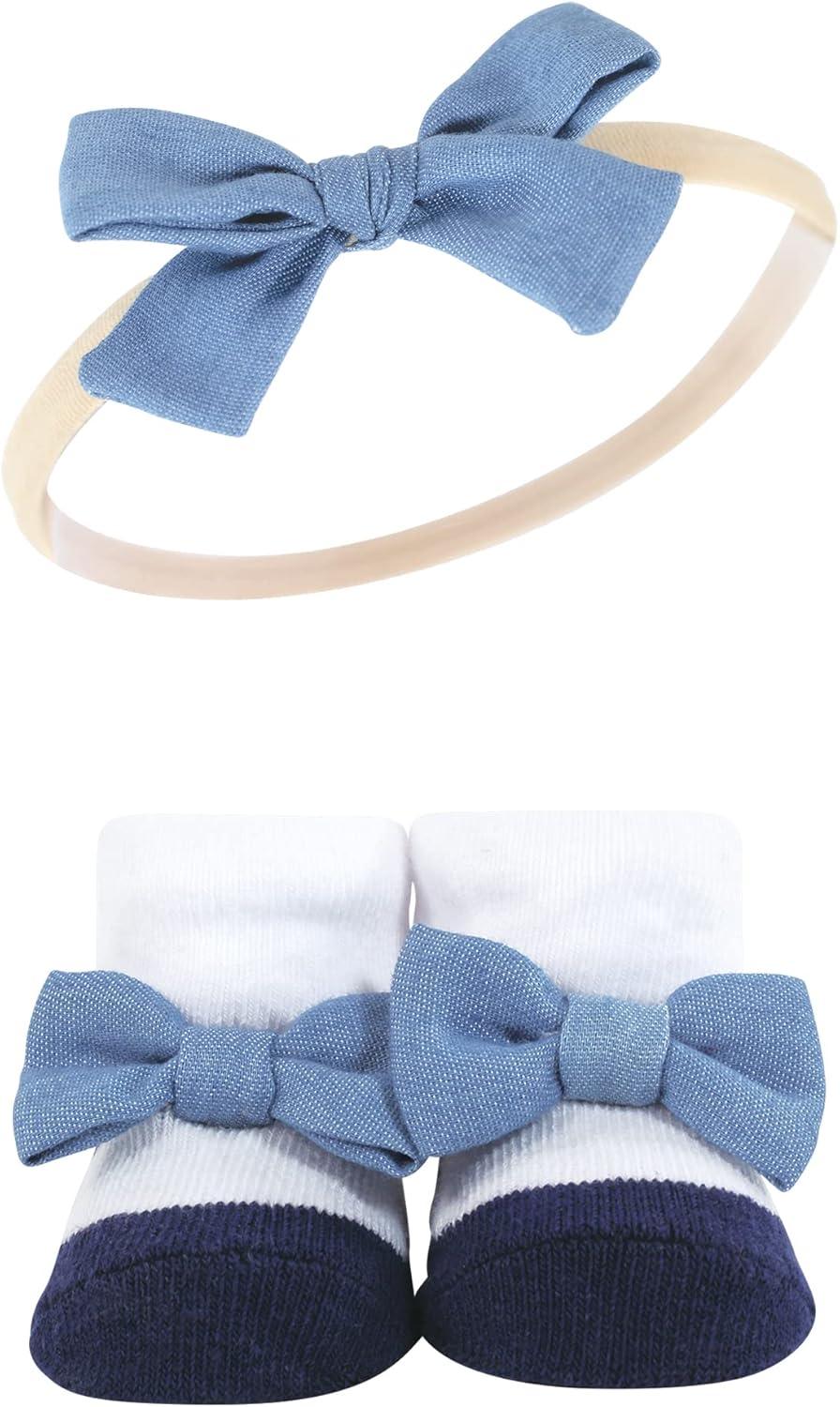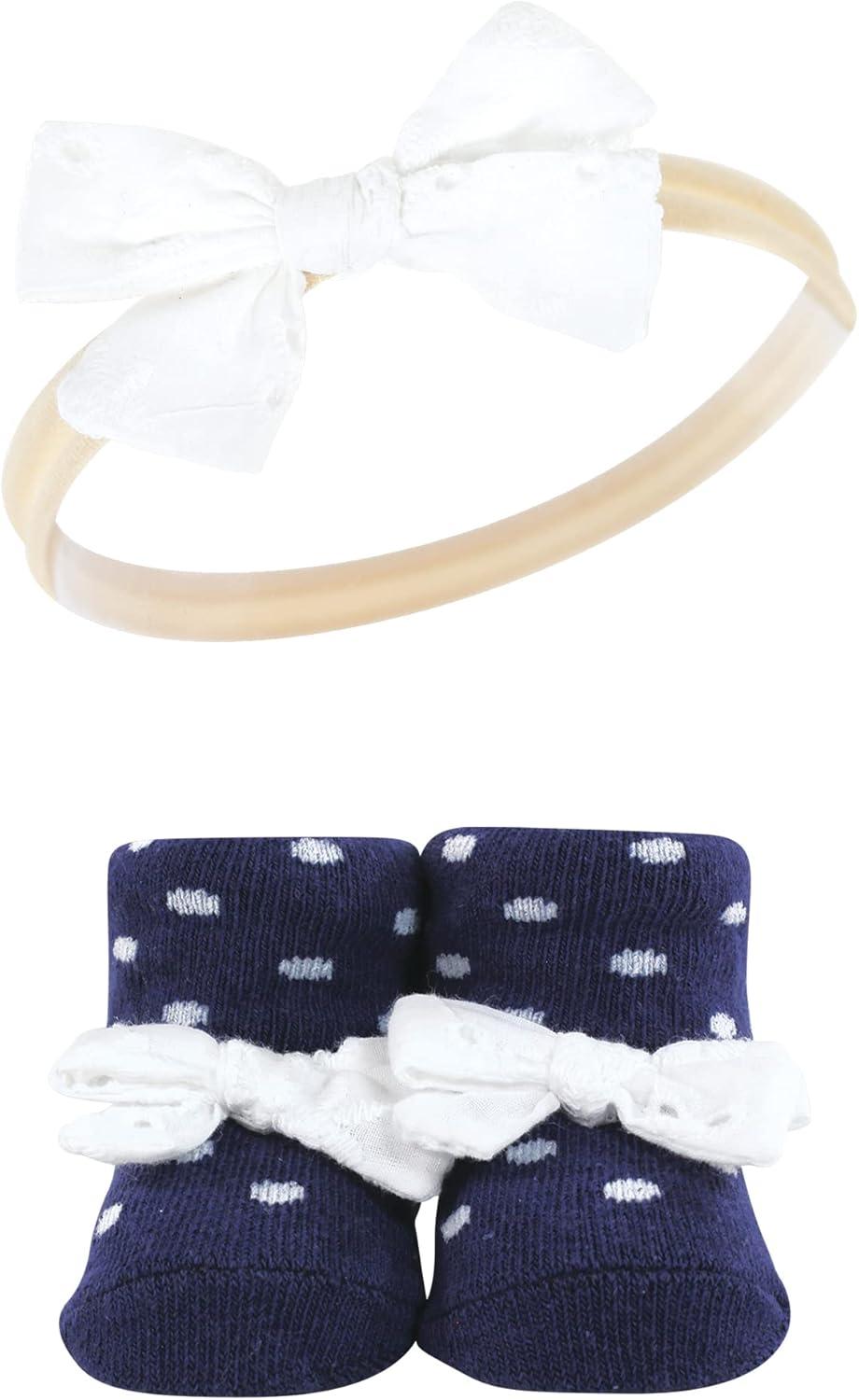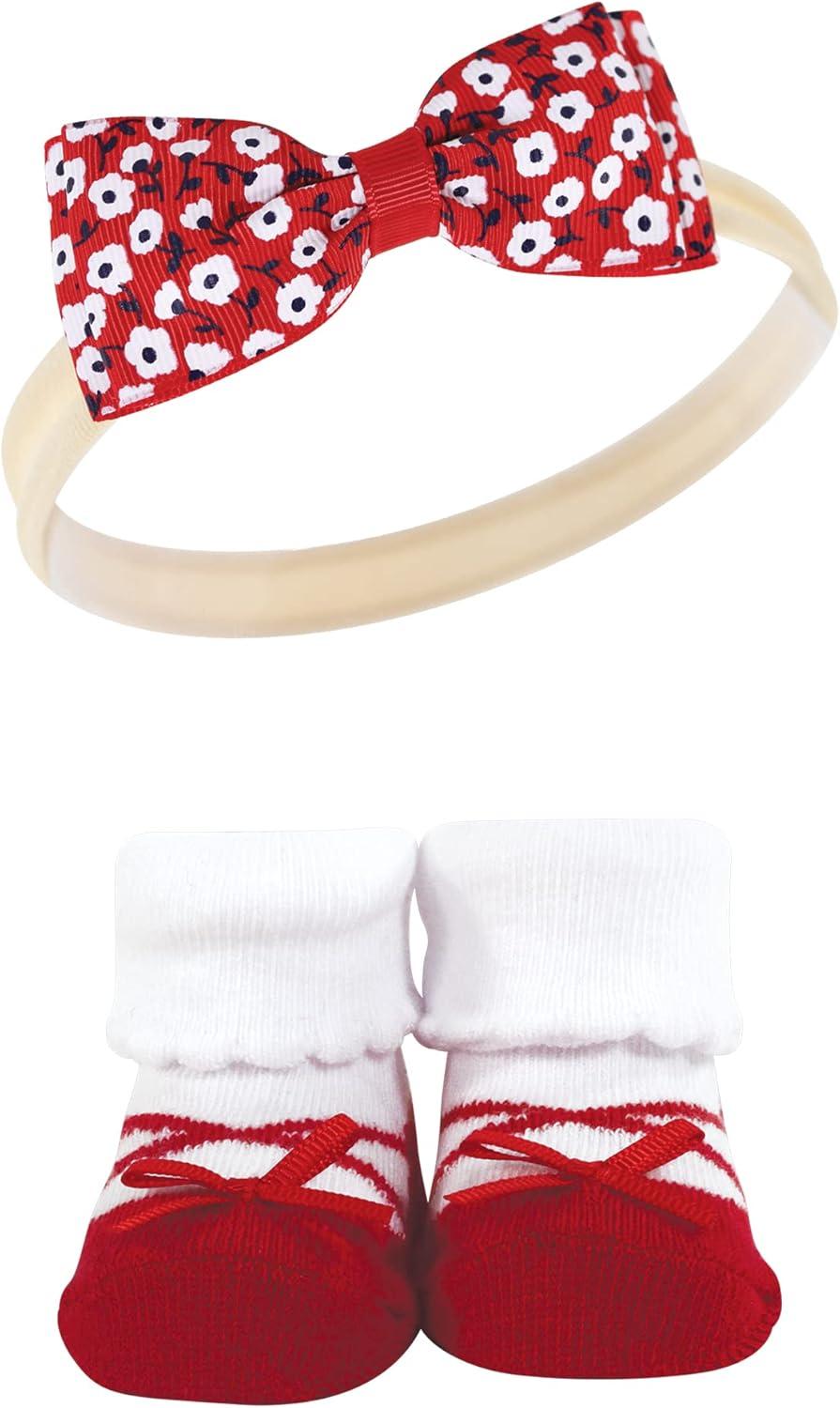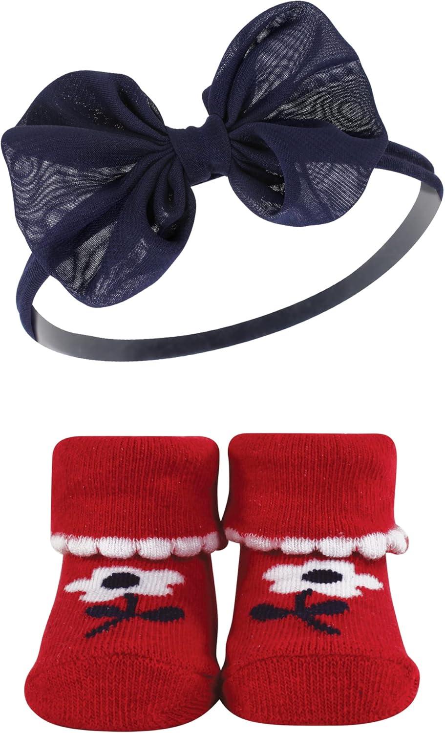 Hudson Baby Girl’s Headband and Socks Giftset(Red Navy Flower)