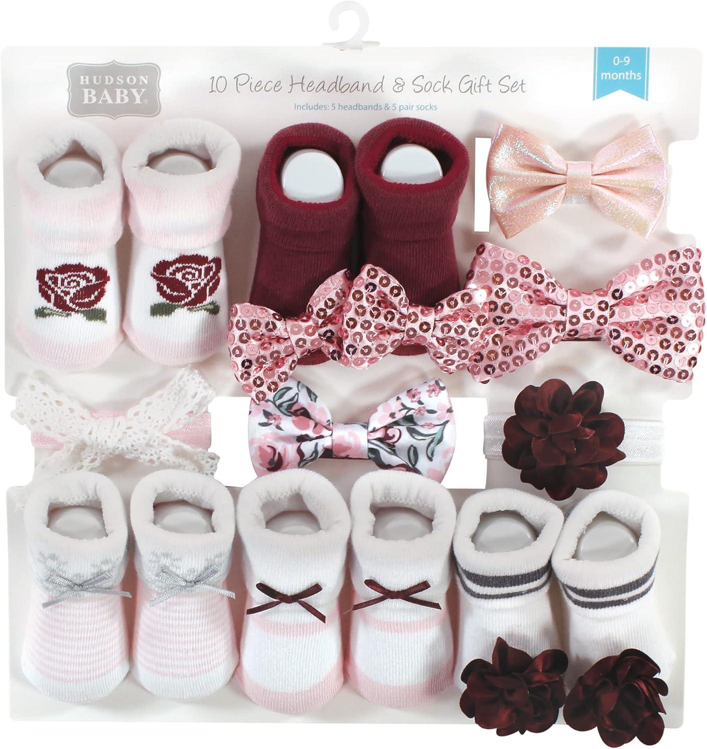 Hudson Baby Girl’s Headband and Socks Giftset(Rose 10-piece)