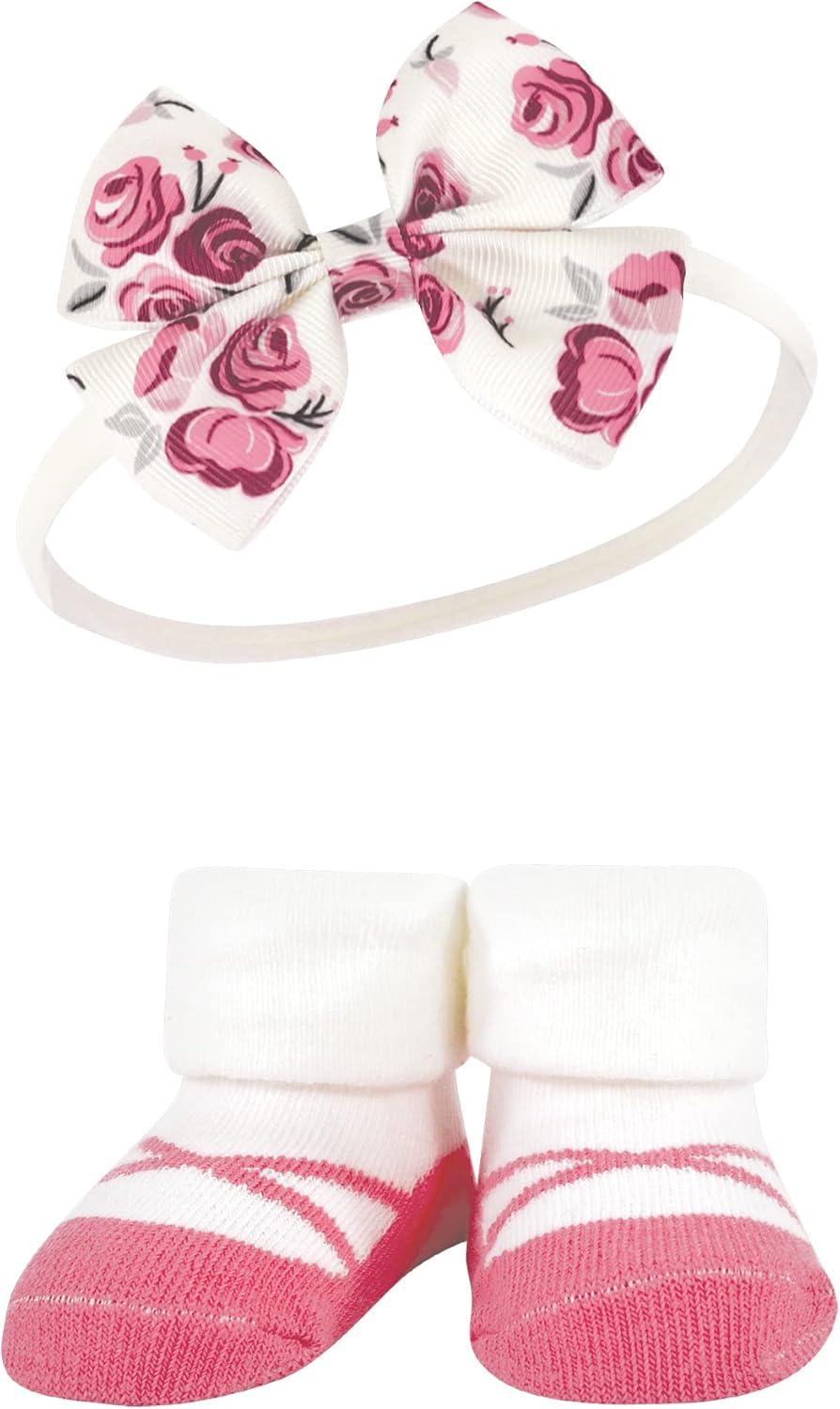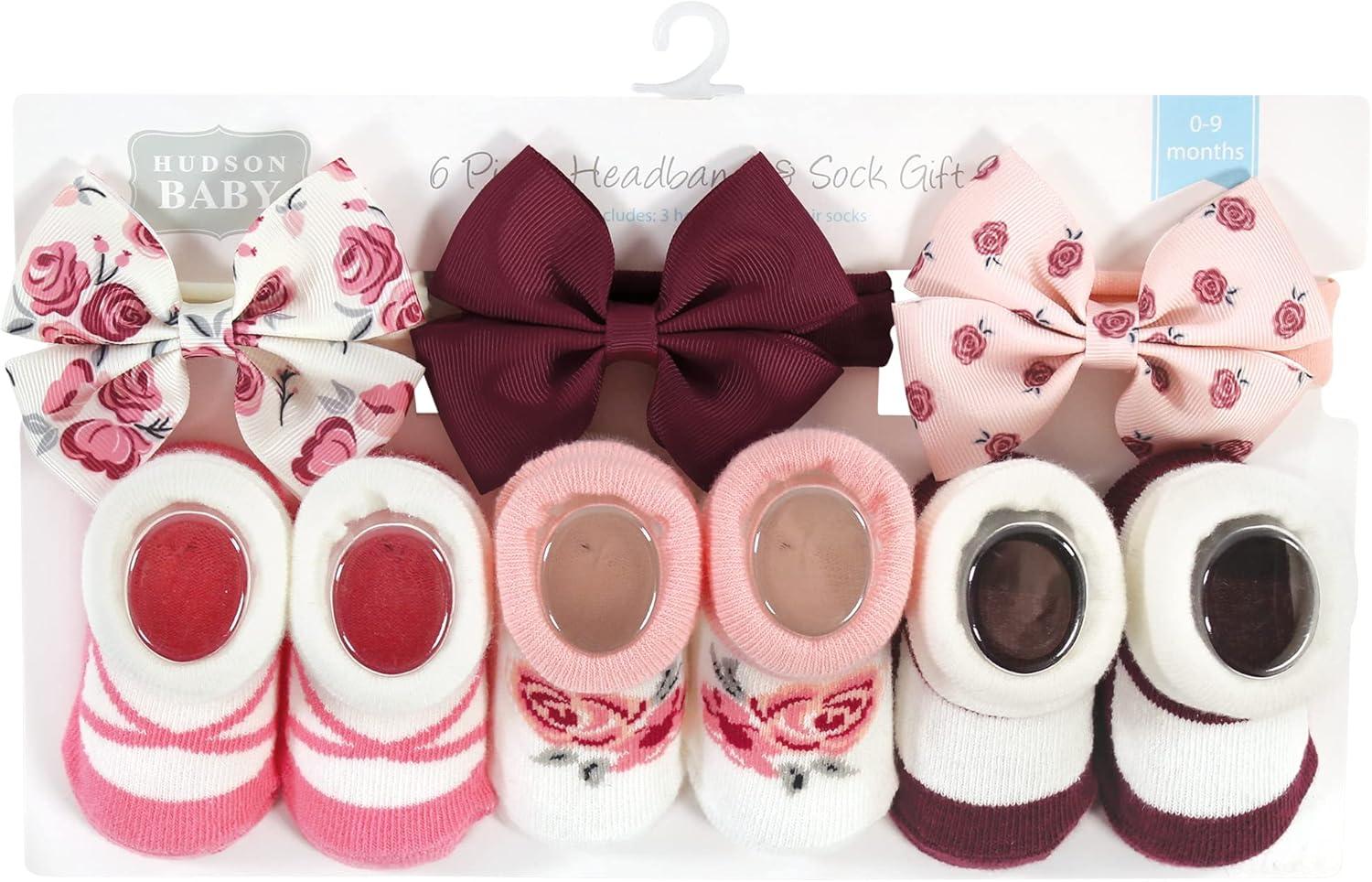 Hudson Baby Girl’s Headband and Socks Giftset(Rose 6-piece)