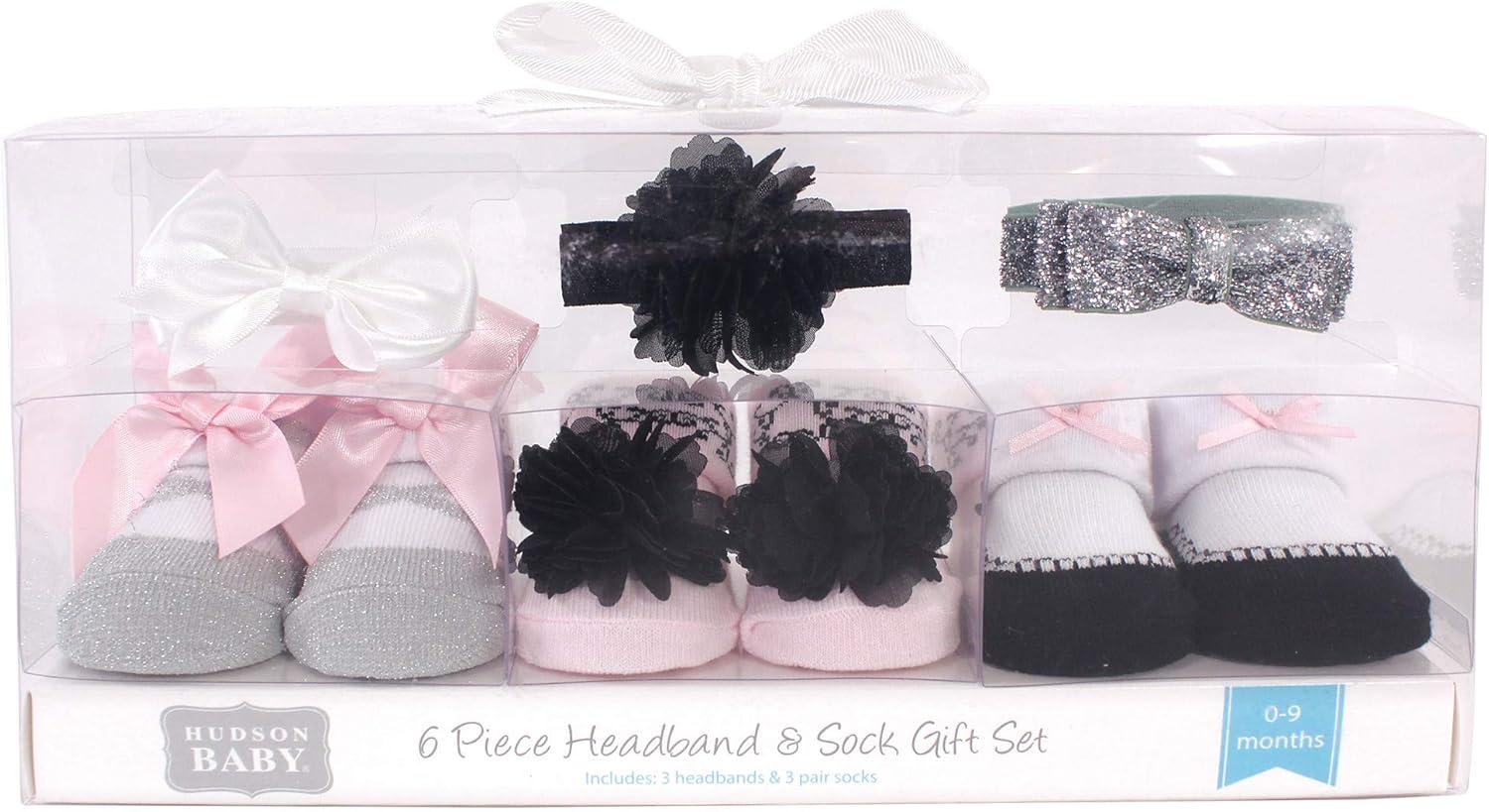Hudson Baby Girl’s Headband and Socks Giftset(Silver Ballet 6-pack)
