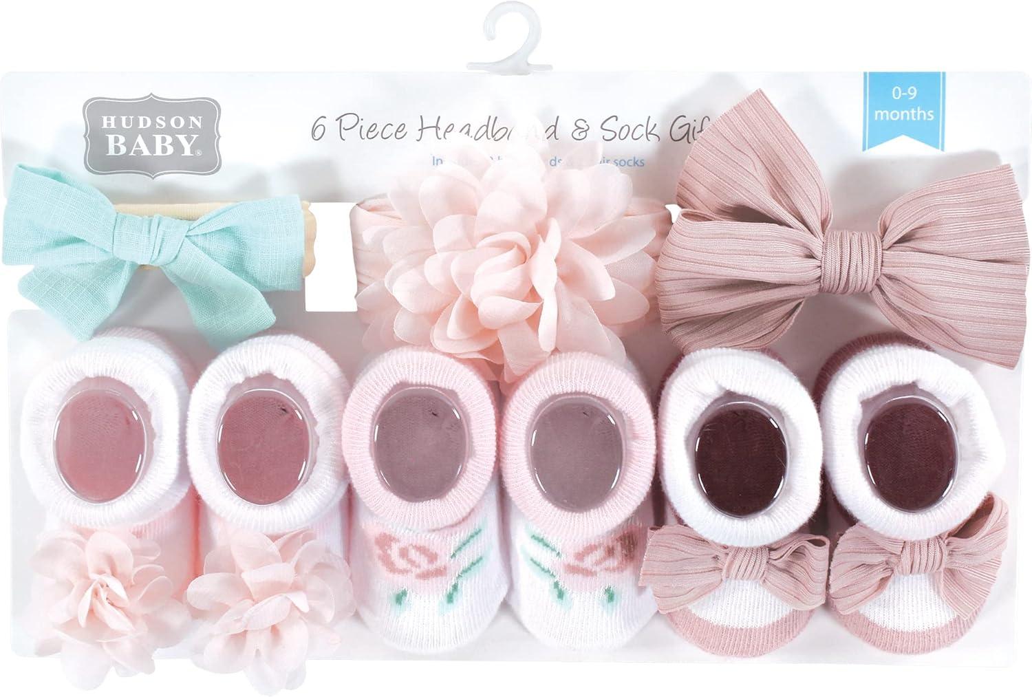 Hudson Baby Girl’s Headband and Socks Giftset(Rose 10-piece)