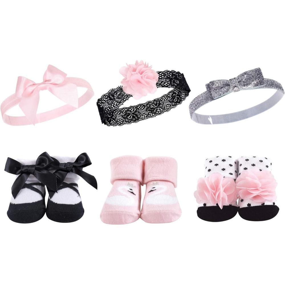Hudson Baby Girl’s Headband and Socks Giftset(Swan 6-pack)