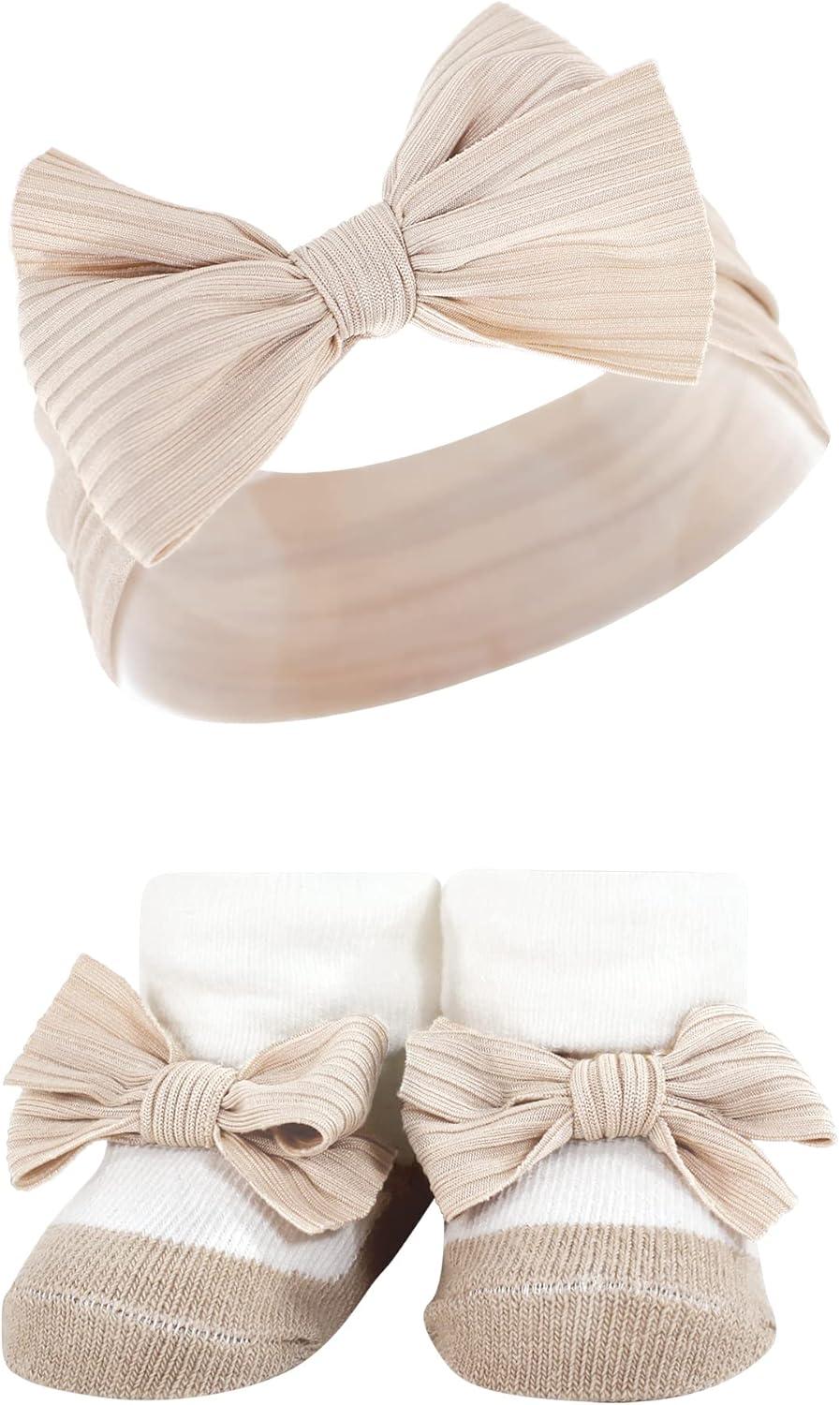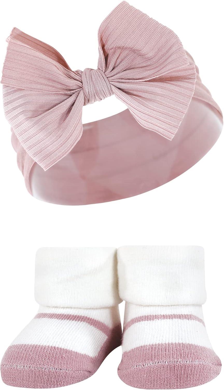 Hudson Baby Girl’s Headband and Socks Giftset(Taupe Pink)