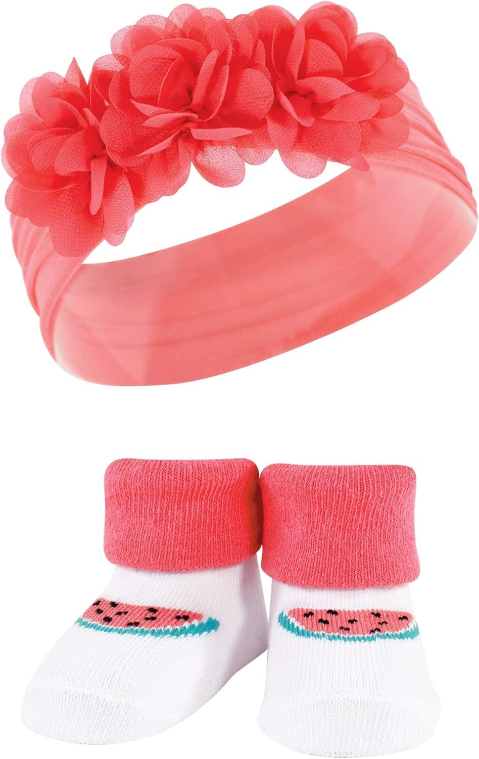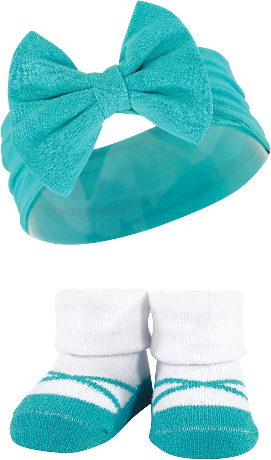 Hudson Baby Girl’s Headband and Socks Giftset(Teal Coral)