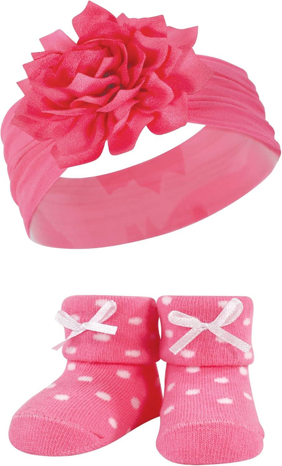Hudson Baby Girl’s Headband and Socks Giftset(Red Pink)