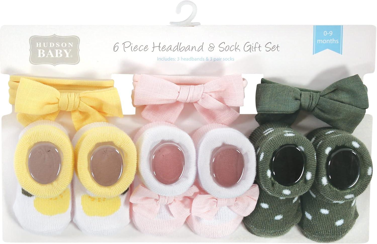 Hudson Baby Girl’s Headband and Socks Giftset(Yellow Green Lemon)