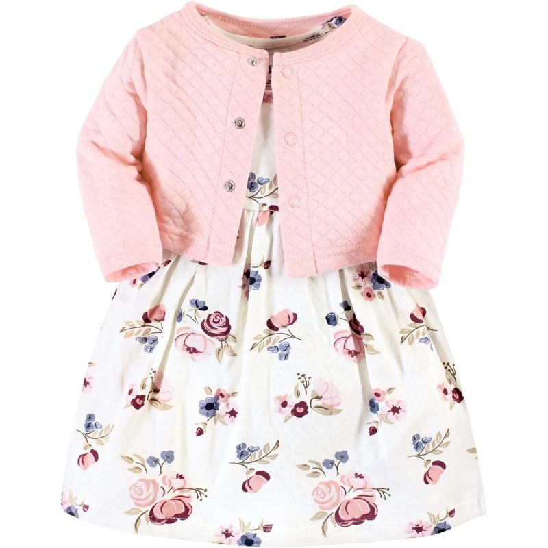 Hudson Baby Girls’ One Size Quilted Cardigan and Dress(Dusty Rose Floral)