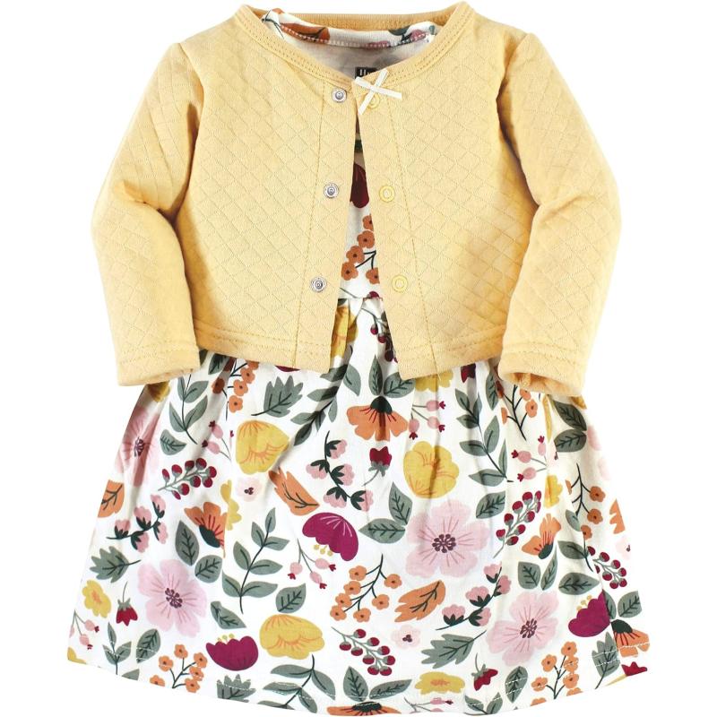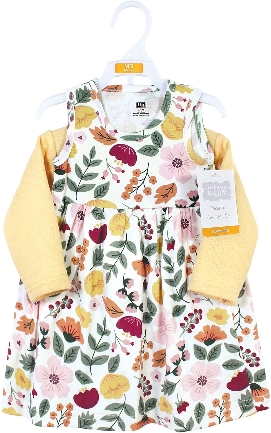 Hudson Baby Girls’ One Size Quilted Cardigan and Dress(Fall Botanical)