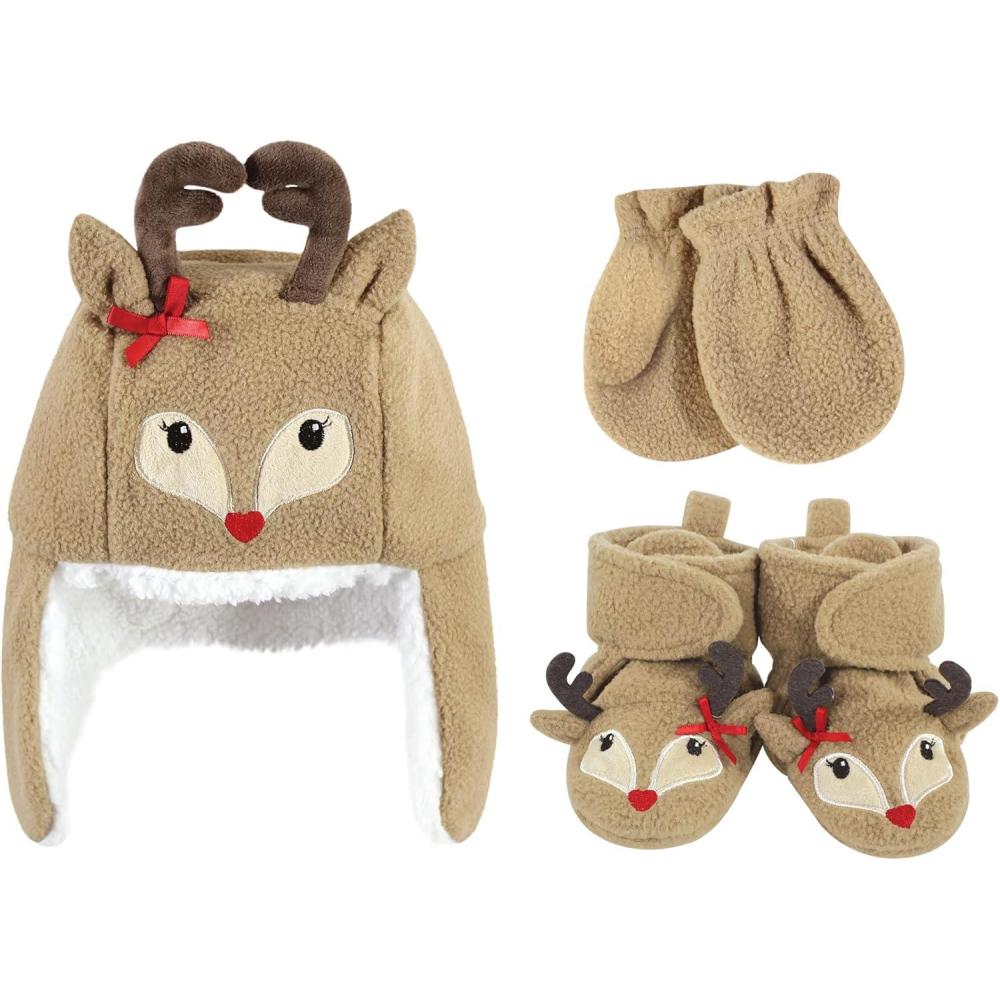 Hudson Baby Girls’ Trapper Hat, Mitten and Bootie Set(Girl Reindeer)