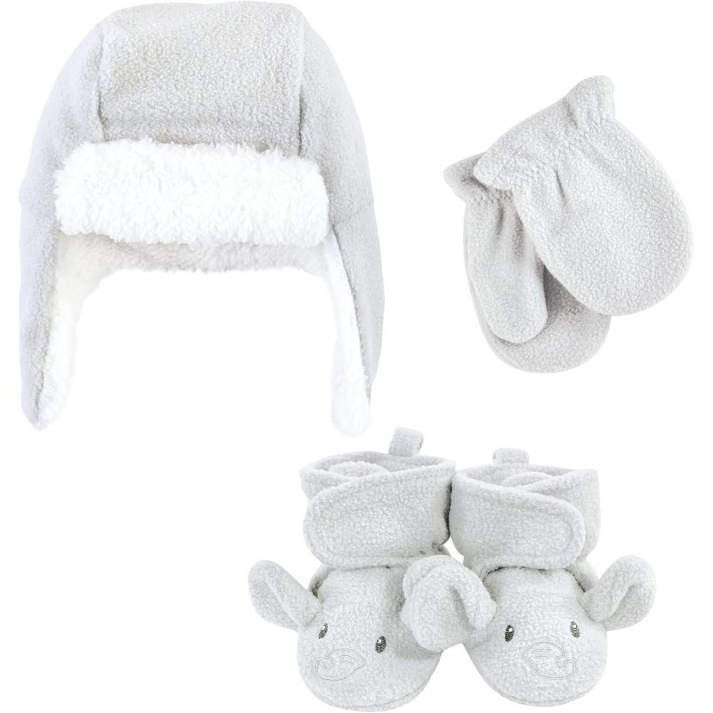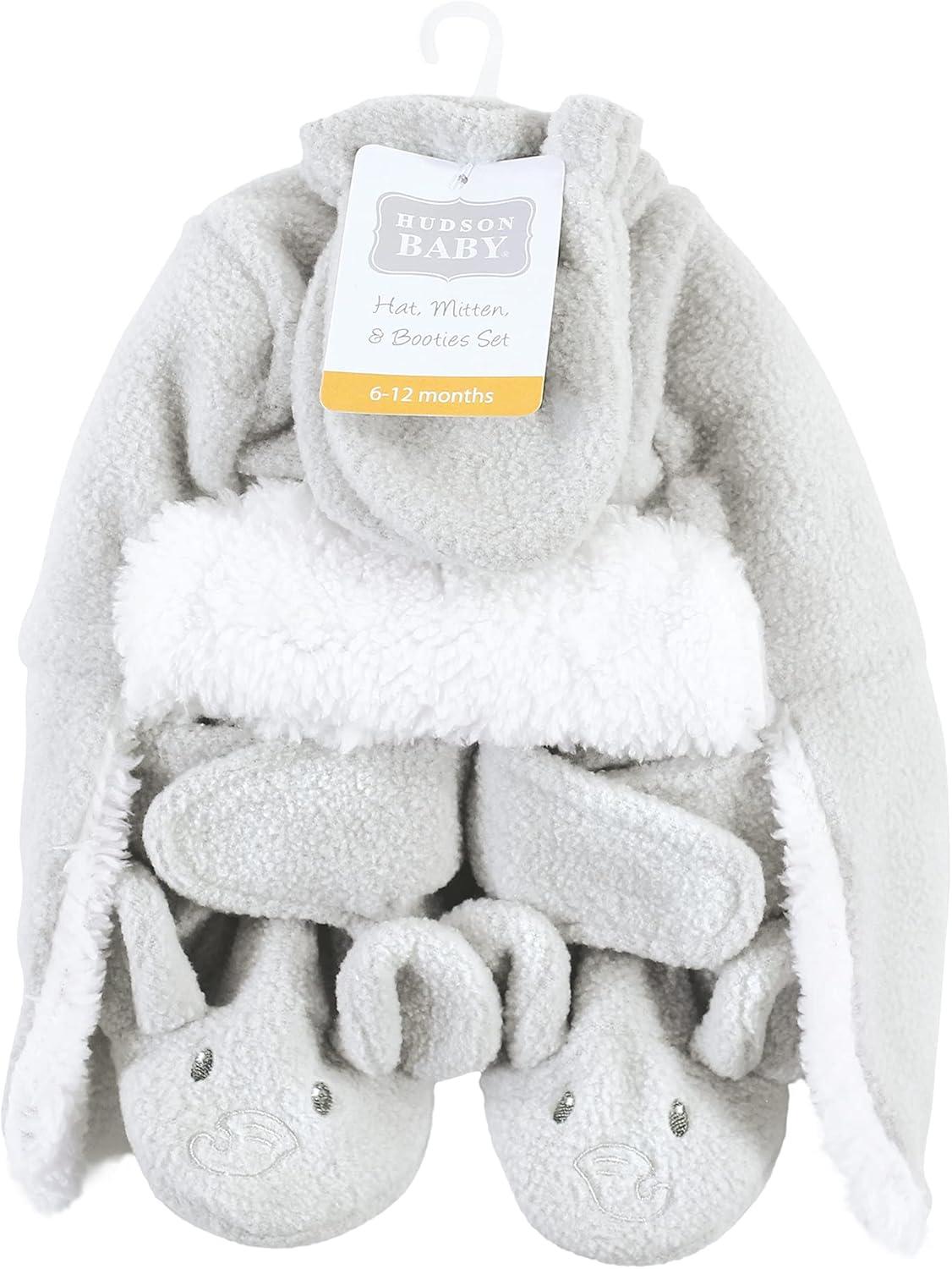 Hudson Baby Girls’ Trapper Hat, Mitten and Bootie Set(Gray Elephant)