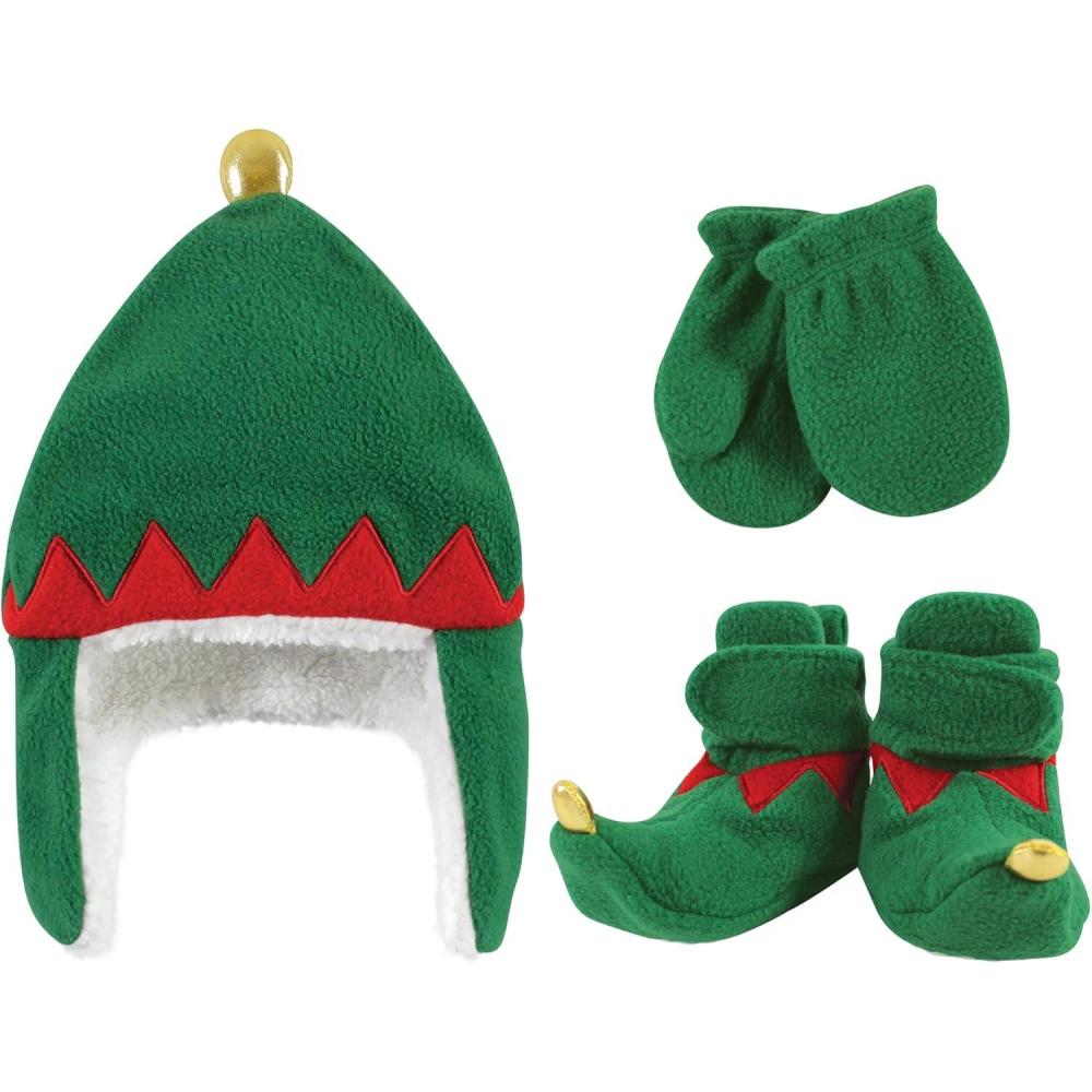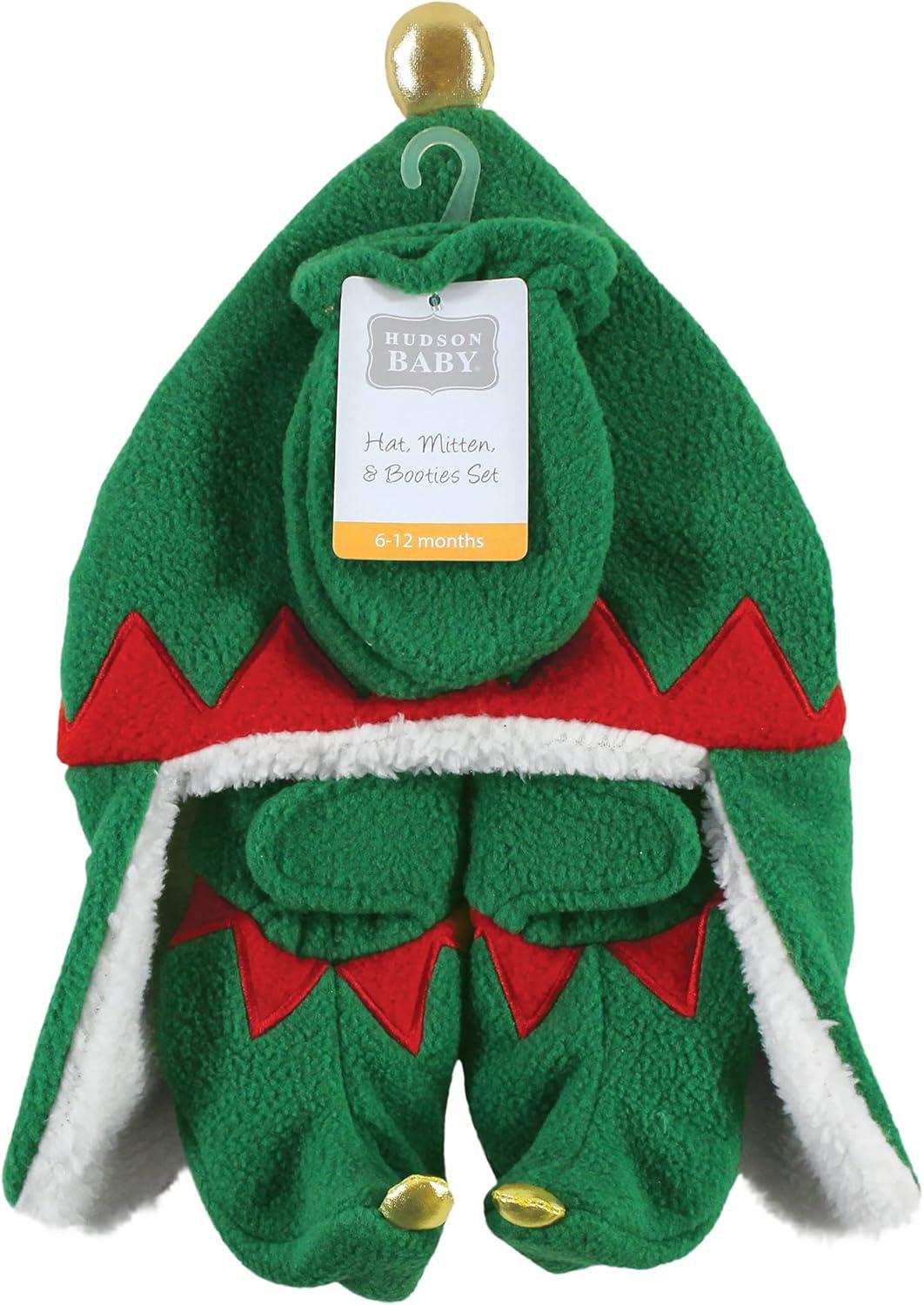 Hudson Baby Girls’ Trapper Hat, Mitten and Bootie Set(Green Elf)