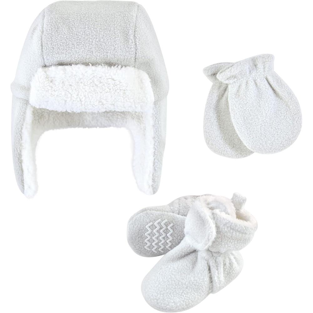 Hudson Baby Girls’ Trapper Hat, Mitten and Bootie Set(Heather Gray)