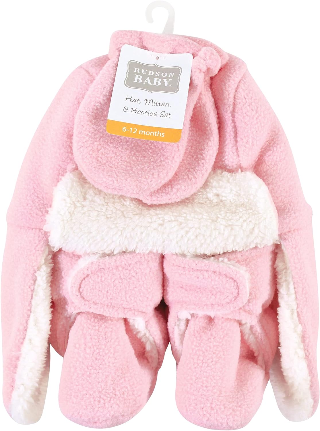 Hudson Baby Girls’ Trapper Hat, Mitten and Bootie Set(Light Pink)