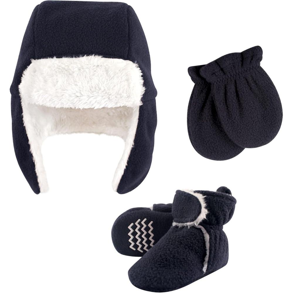 Hudson Baby Girls’ Trapper Hat, Mitten and Bootie Set(Navy)