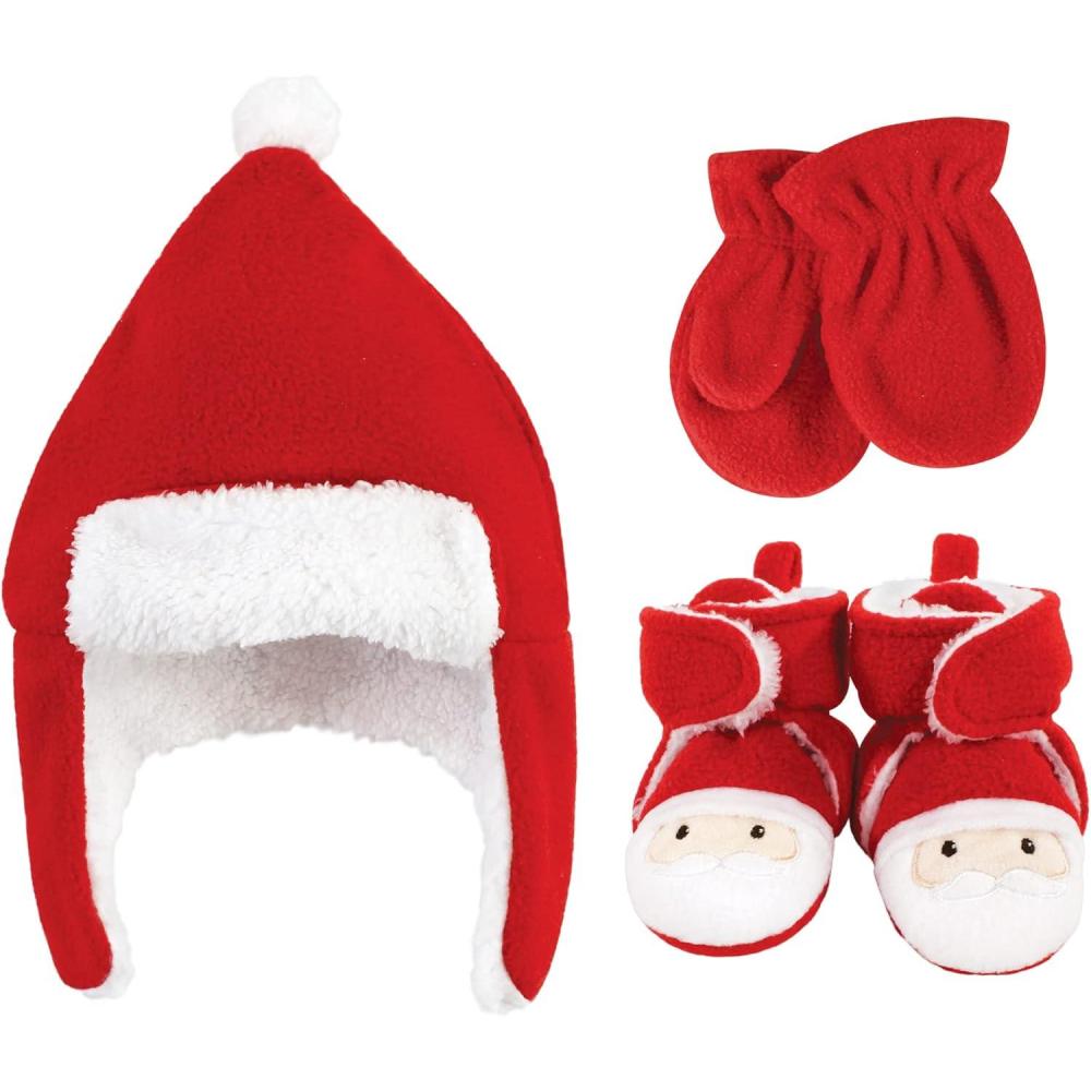 Hudson Baby Girls’ Trapper Hat, Mitten and Bootie Set(Santa)