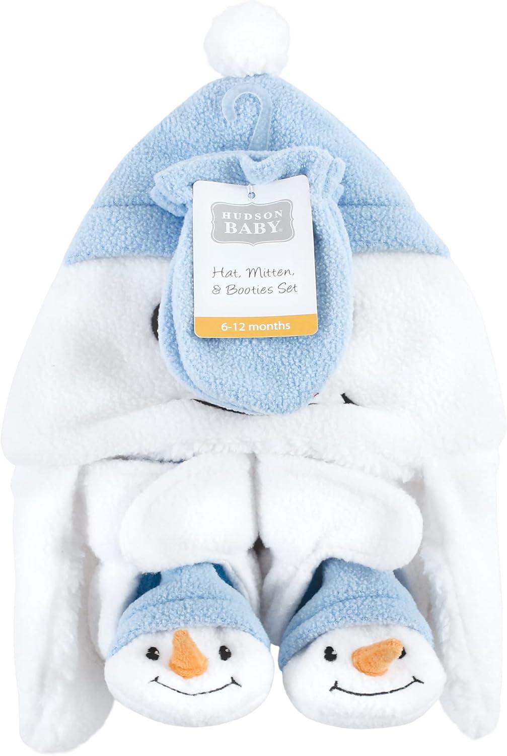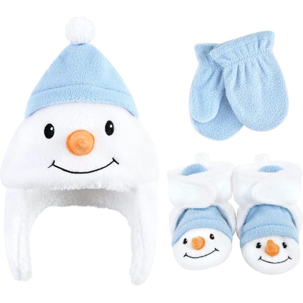Hudson Baby Girls’ Trapper Hat, Mitten and Bootie Set(Snowman)