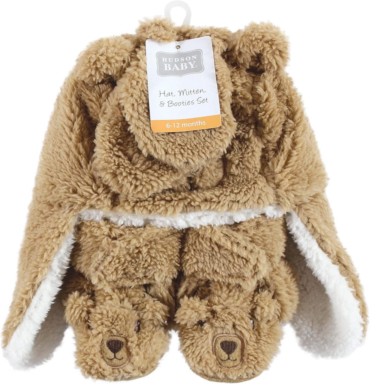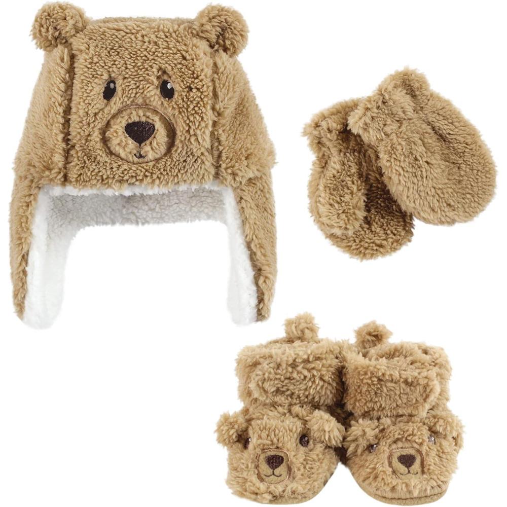 Hudson Baby Girls’ Trapper Hat, Mitten and Bootie Set(Tan Bear)