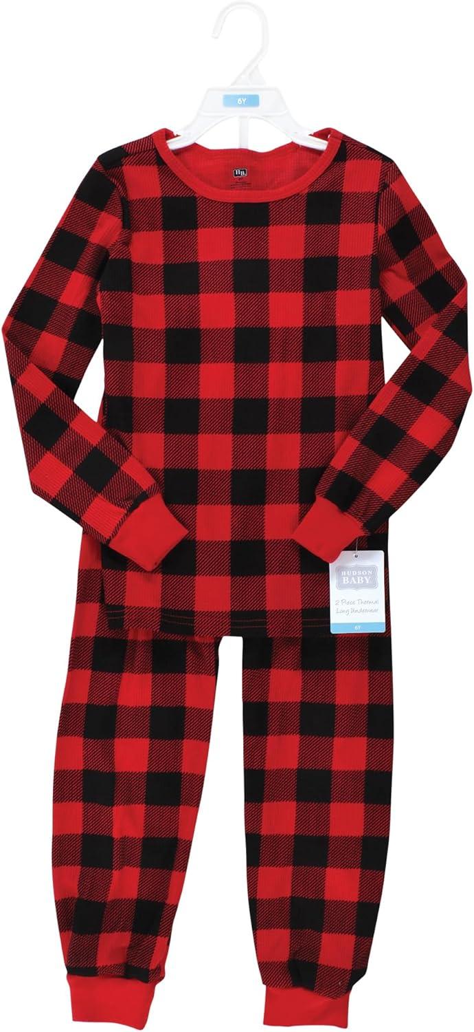 Hudson Baby Girls Unisex Baby Thermal Long Underwear 2pc Set, Heather Gray, 8 Years(Buffalo Plaid)