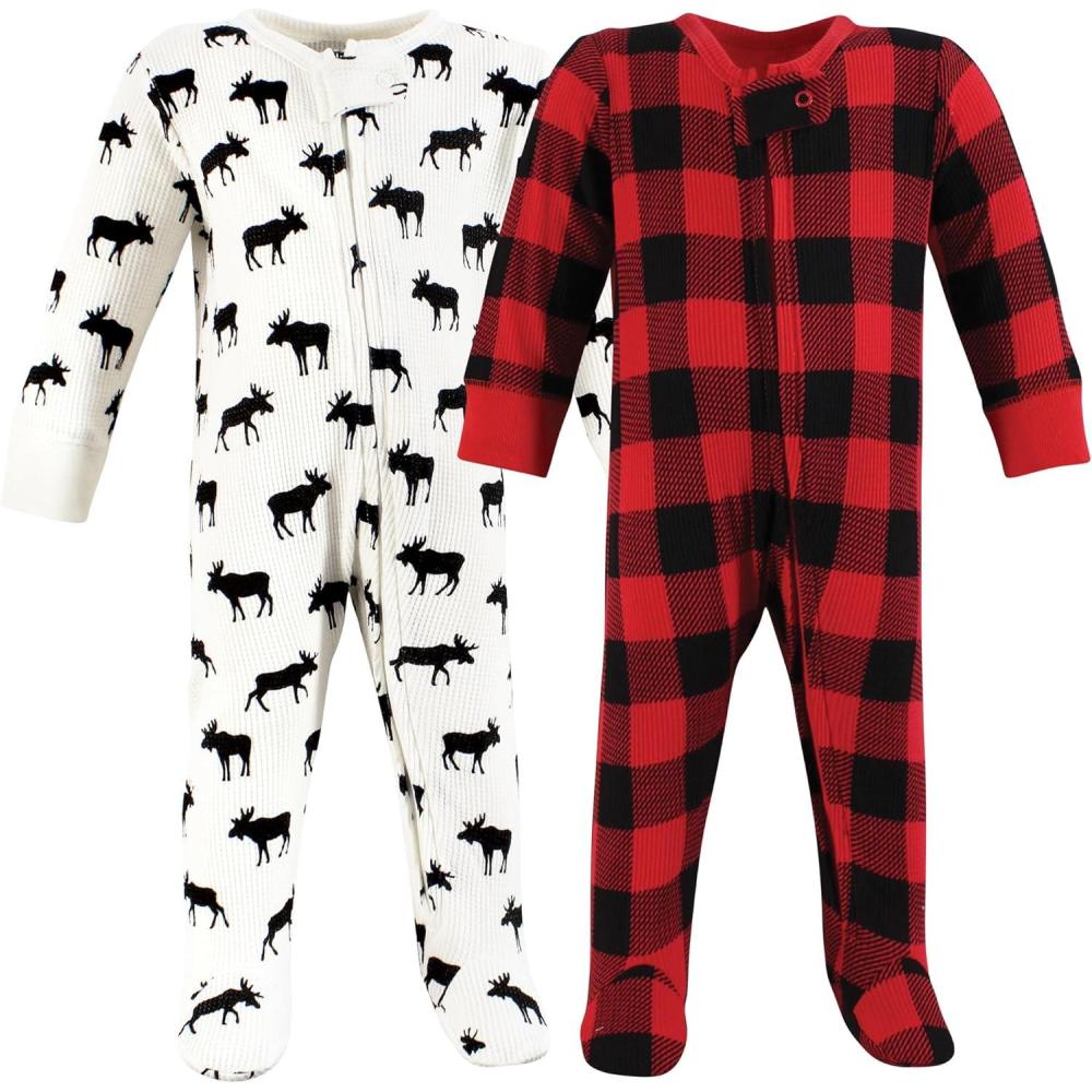 Hudson Baby Girls Unisex Baby Thermal Zipper Sleep and Play 2pk, Sage Dinosaur, 3-6 Months(Buffalo Plaid Moose)