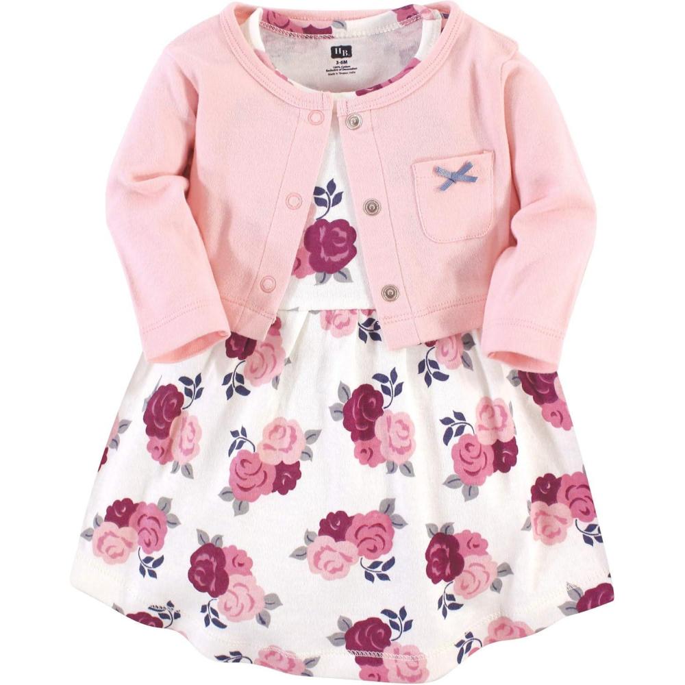 imageHudson Baby Infant and Toddler Girls Cotton Dress and Cardigan SetBlush Rose