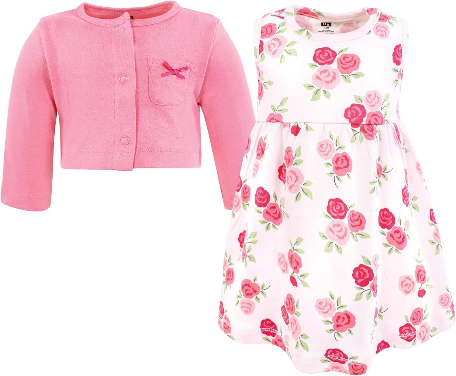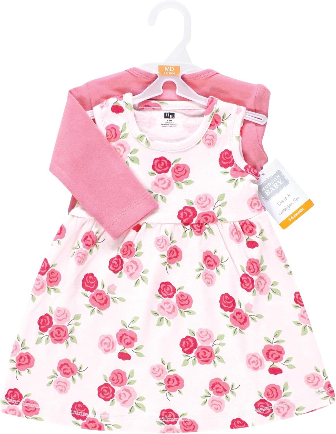 Hudson Baby Infant and Toddler Girls Cotton Dress and Cardigan Set(Bright Pink Rose)
