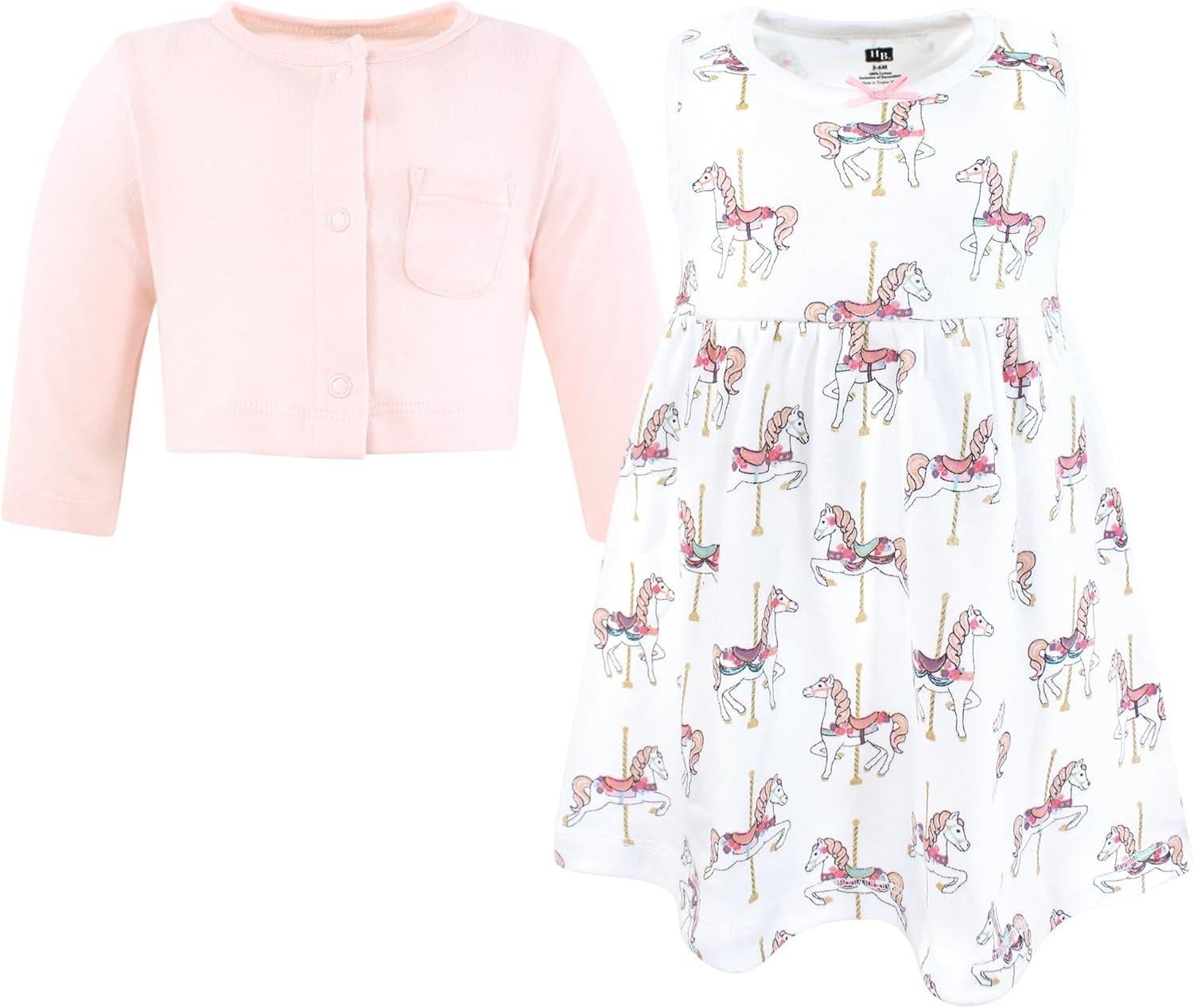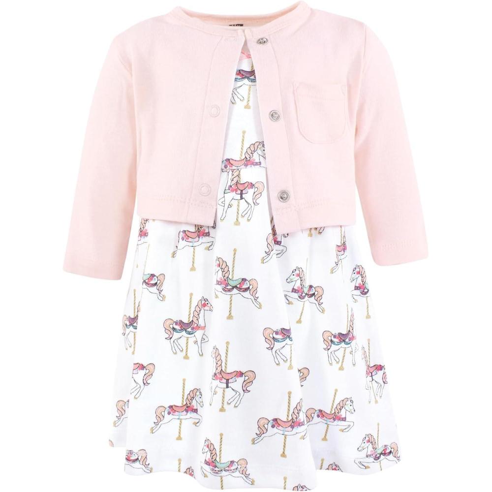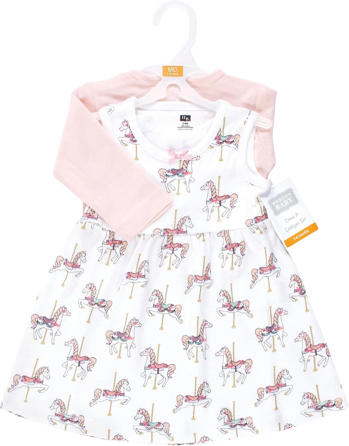 Hudson Baby Infant and Toddler Girls Cotton Dress and Cardigan Set(Carousel Horse)
