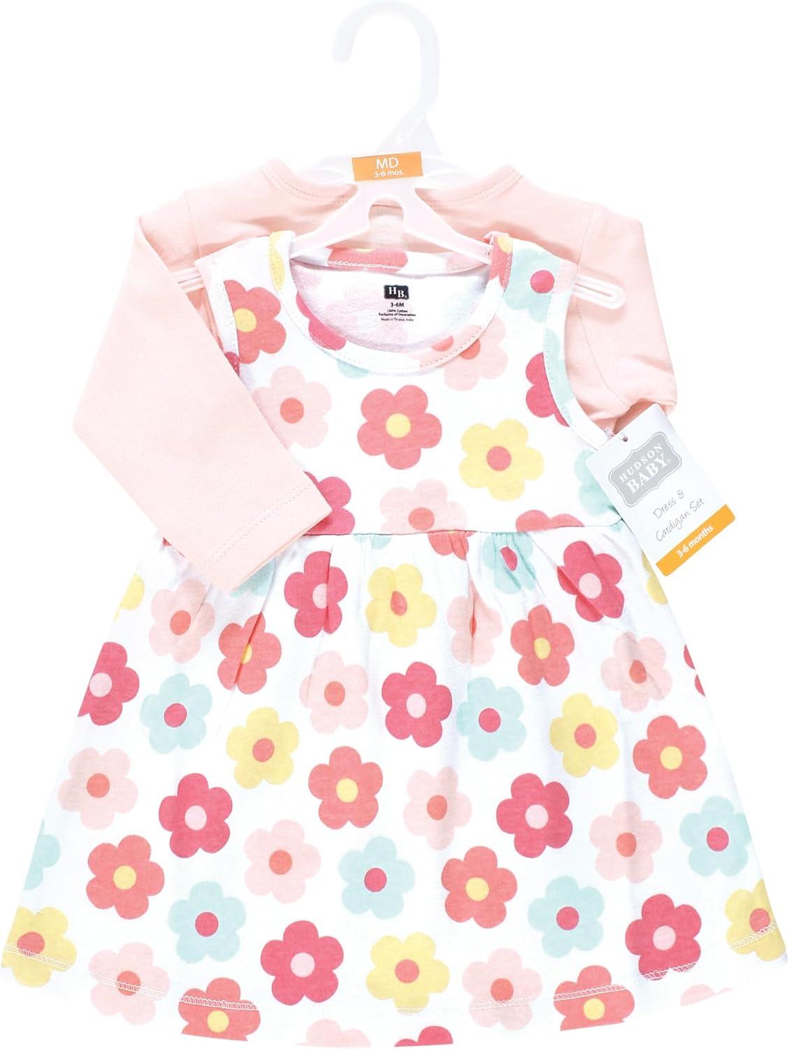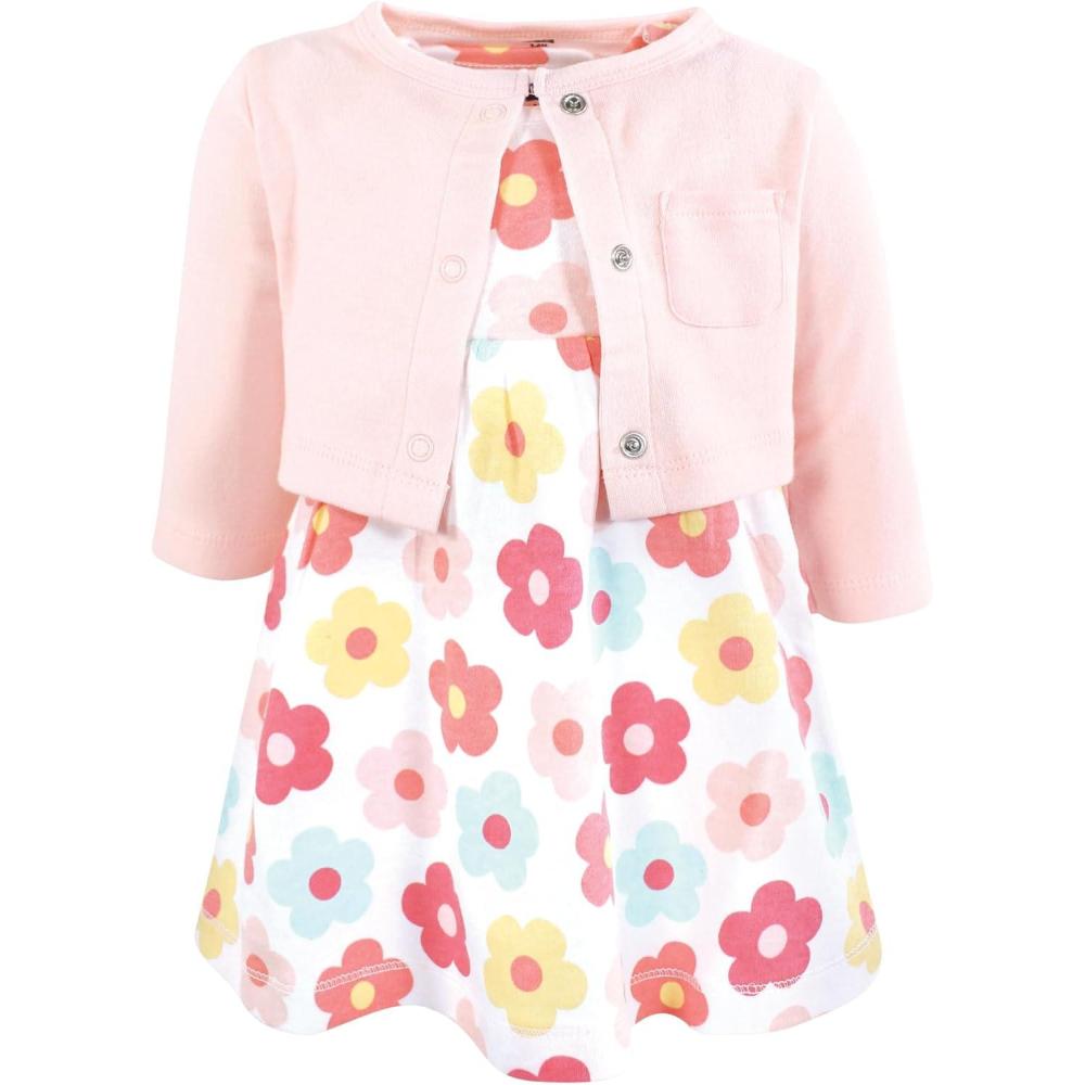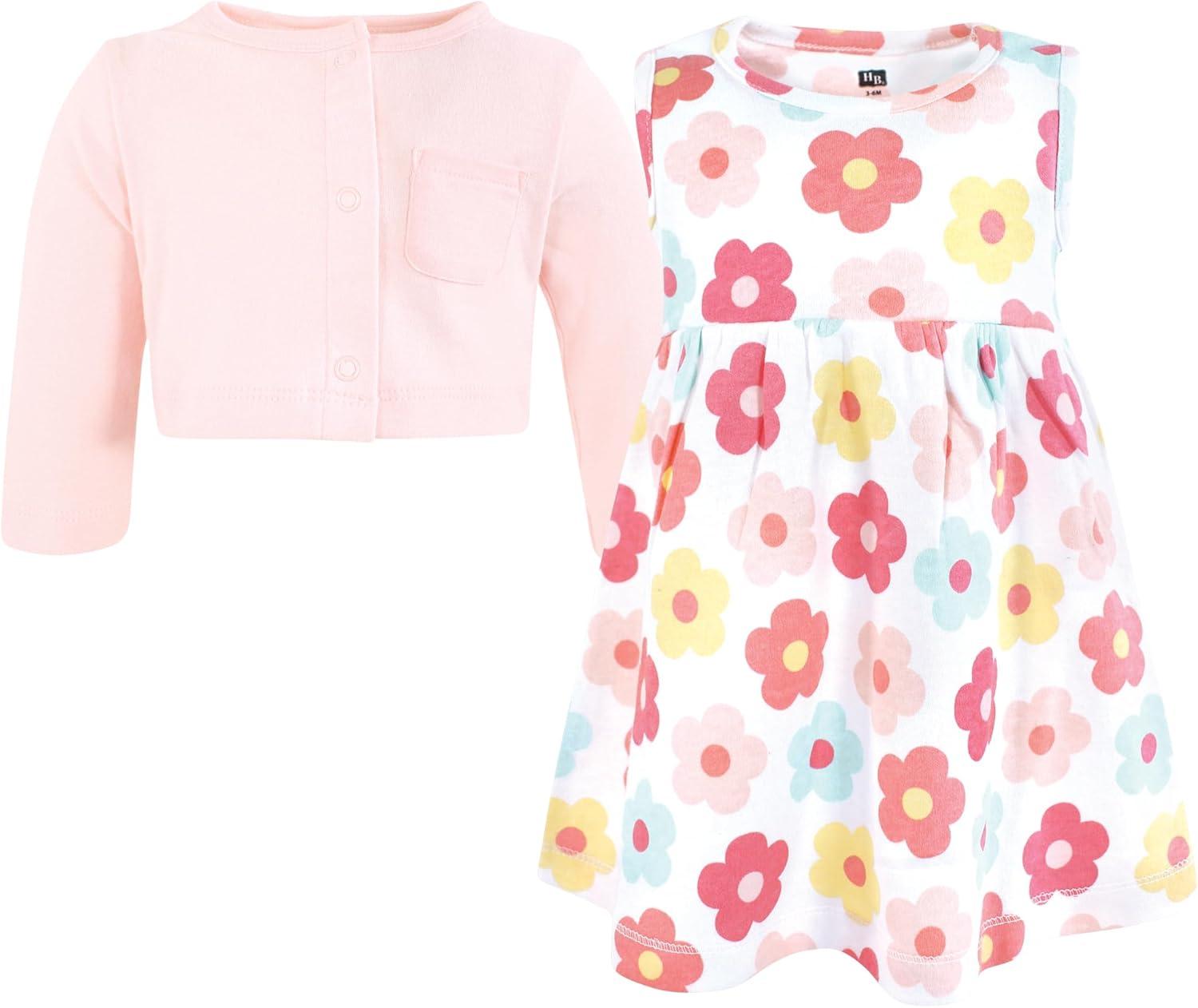 Hudson Baby Infant and Toddler Girls Cotton Dress and Cardigan Set(Cheerful Flower)