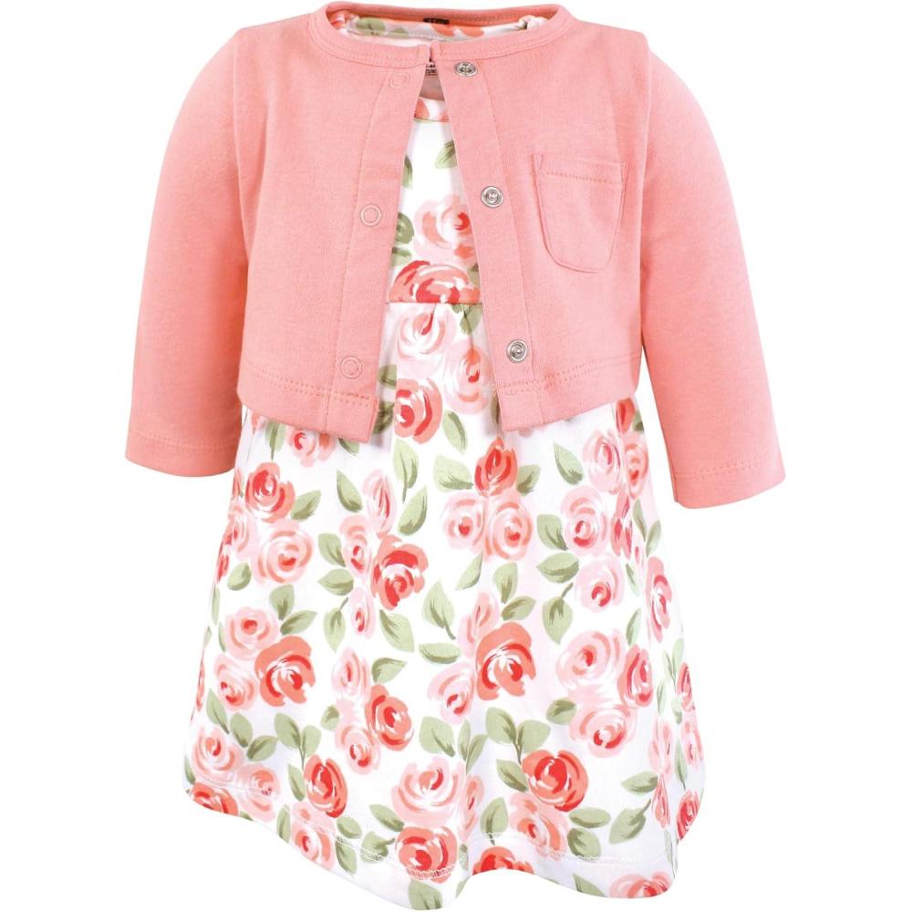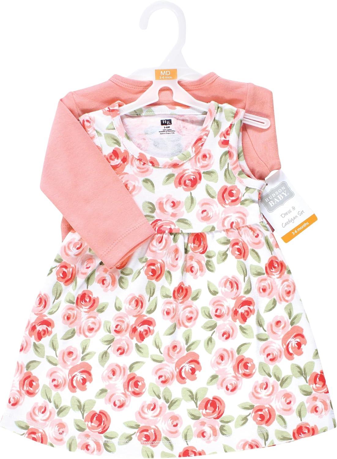 Hudson Baby Infant and Toddler Girls Cotton Dress and Cardigan Set(Coral Floral)
