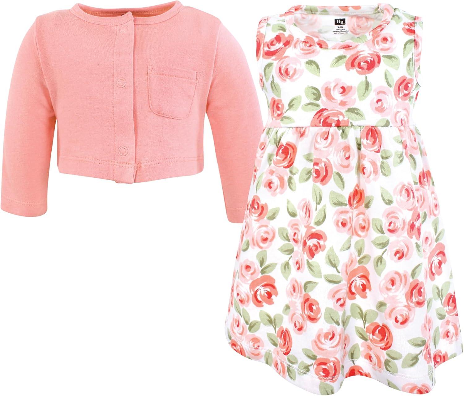 Hudson Baby Infant and Toddler Girls Cotton Dress and Cardigan Set(Cheerful Flower)