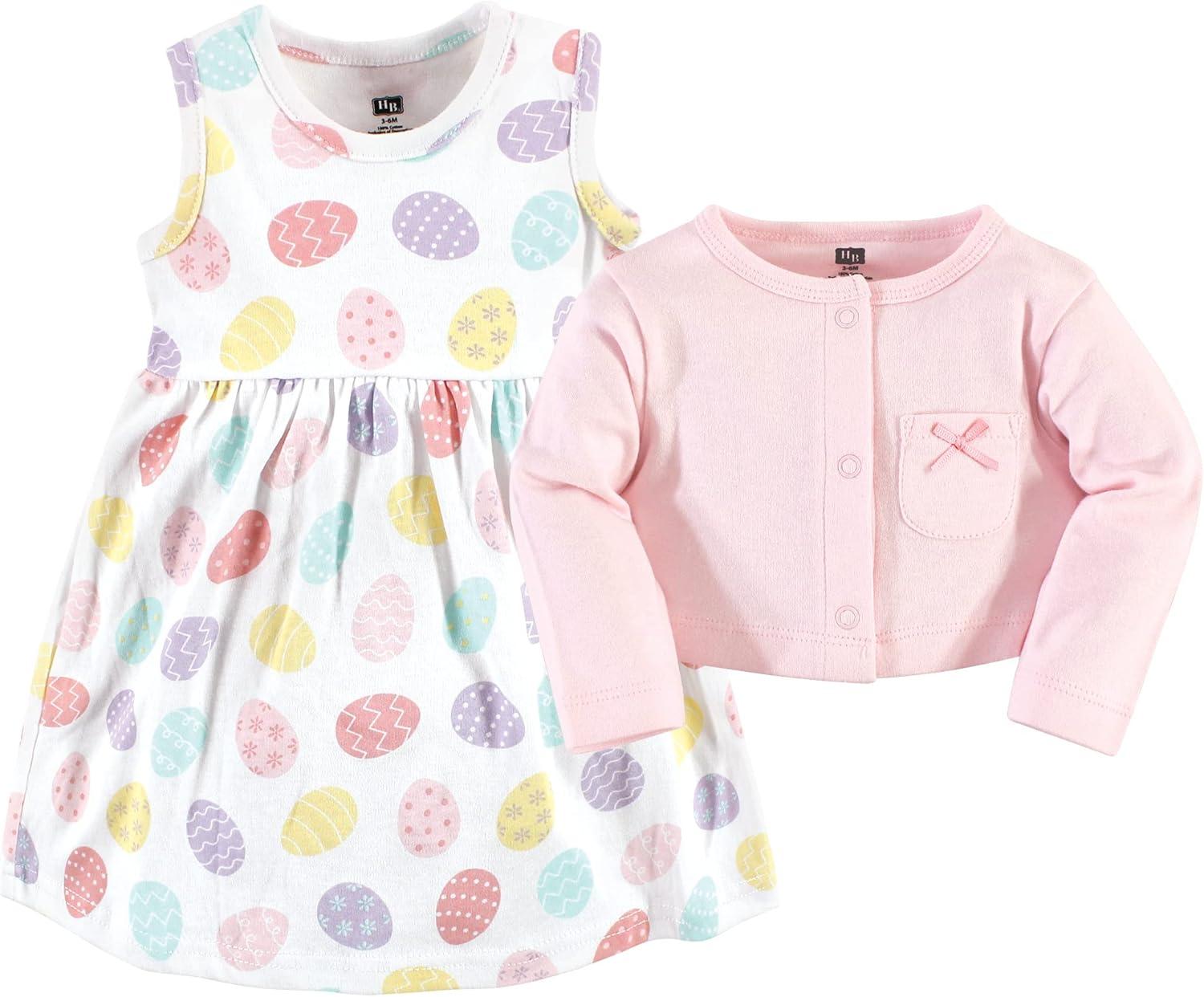 Hudson Baby Infant and Toddler Girls Cotton Dress and Cardigan Set(Easter Eggs)