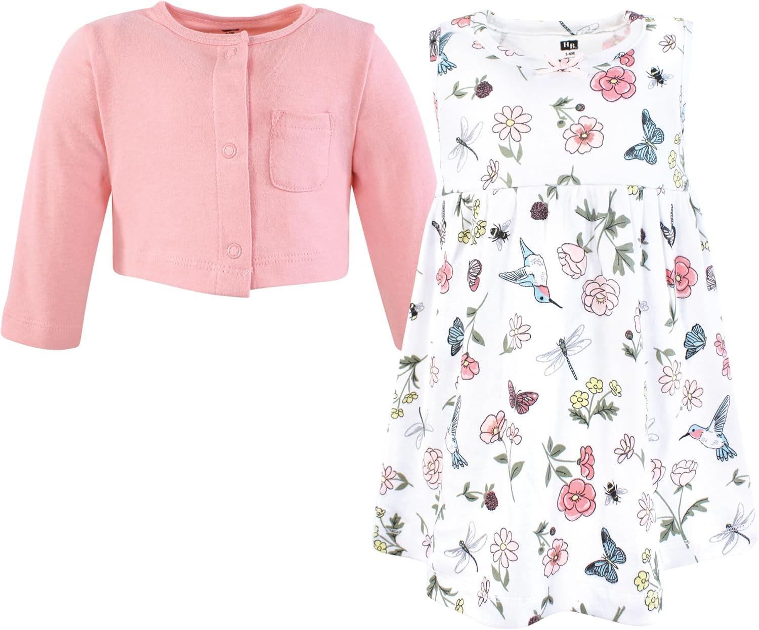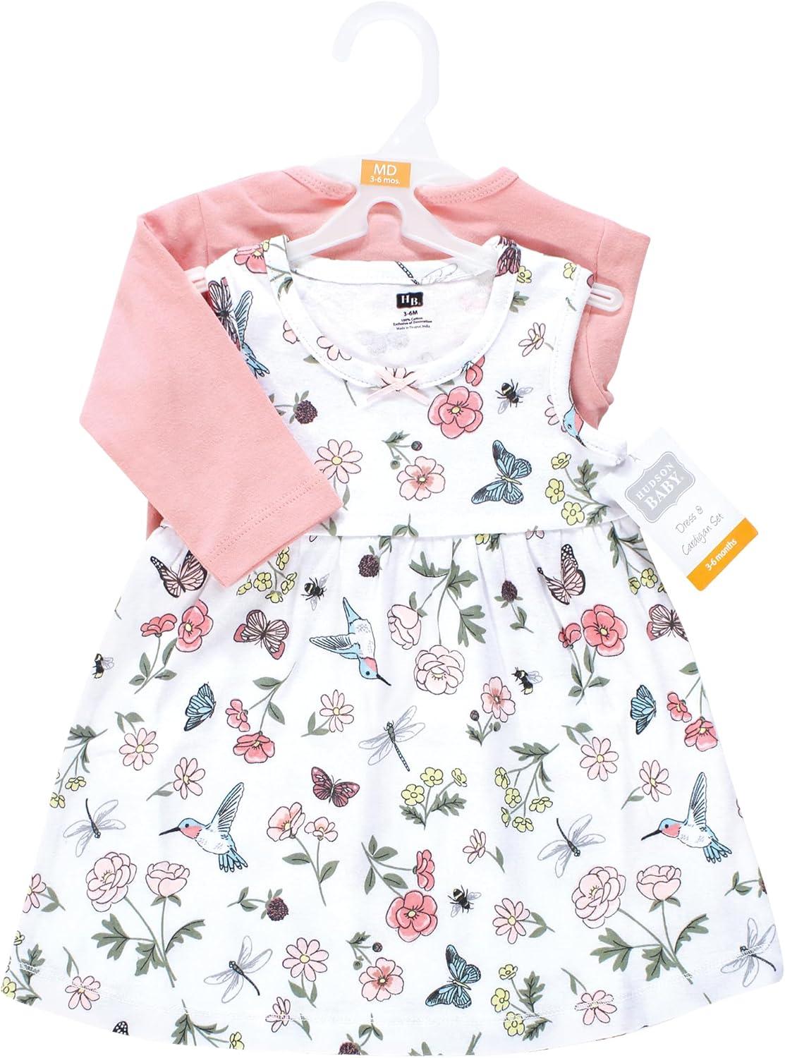 Hudson Baby Infant and Toddler Girls Cotton Dress and Cardigan Set(Hummingbird Garden)