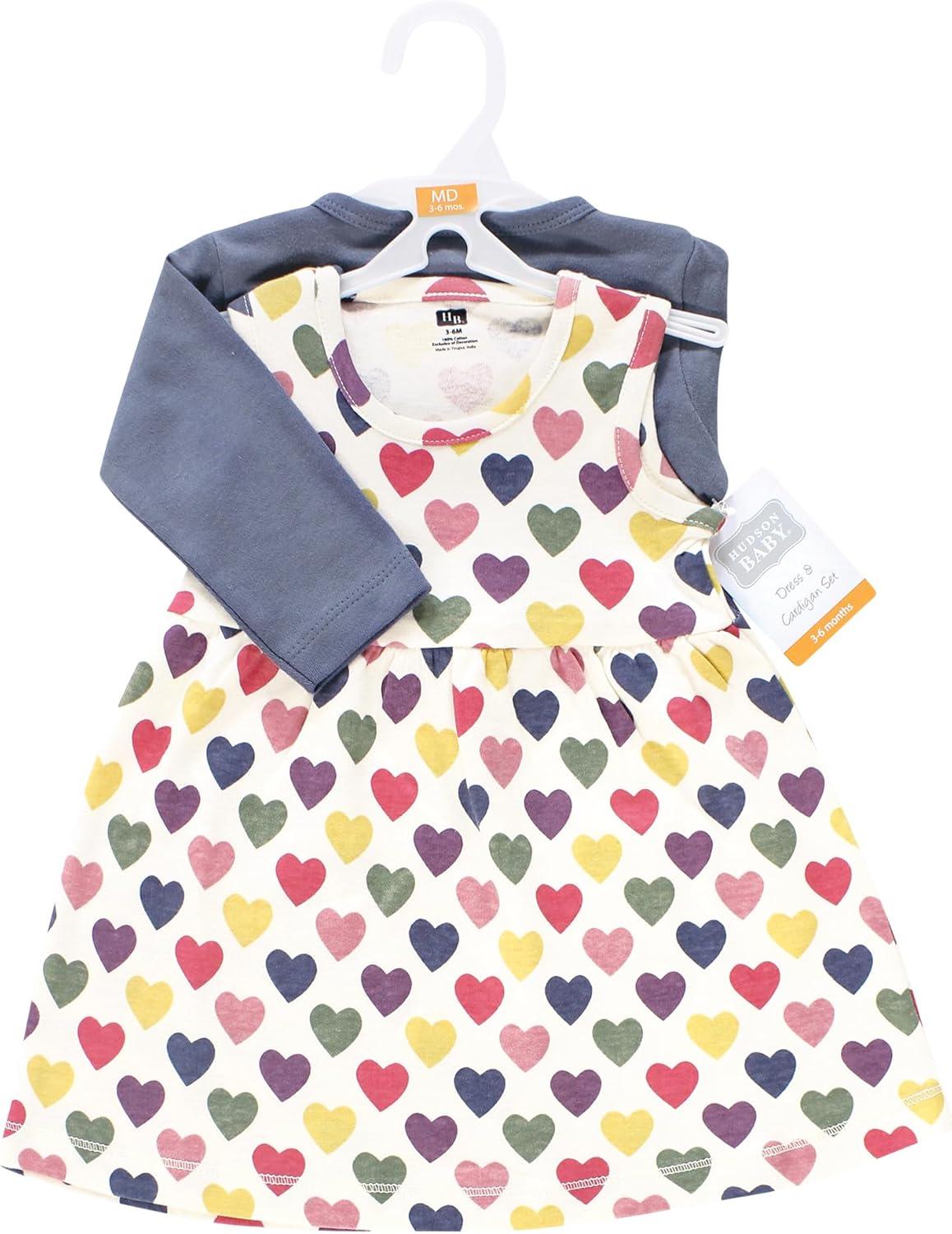 Hudson Baby Infant and Toddler Girls Cotton Dress and Cardigan Set(Leopard Hearts)